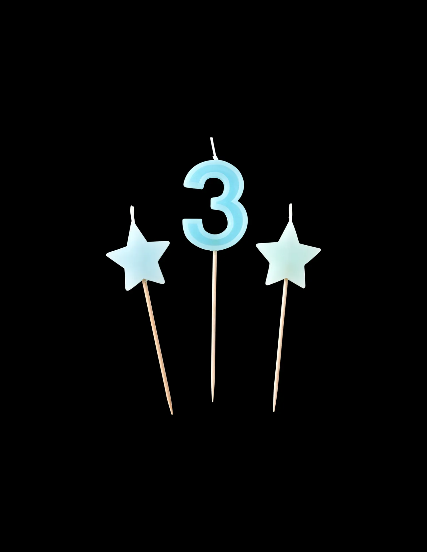 Die Kuchenkerzen der Schwestern bestehen aus Paraffinwachs, und jedes Päckchen enthält eine nummerierte Kerze sowie zwei sternförmige Kerzen. Die Zahl ‚3‘ misst 11,5 x 3 cm und die beiden Sterne messen jeweils 9 x 3 cm. Alle drei Kerzen sind an einem 7 cm langen Stiel befestigt. „Die Schönheit liegt im Detail“, wie Anna und Clara zu sagen pflegen.