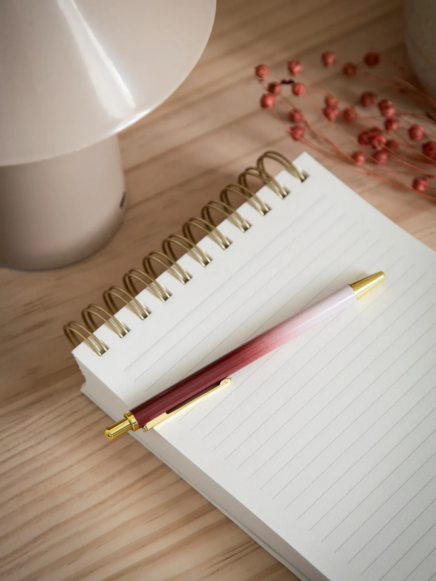 Der Kugelschreiber der Schwestern hat einen klassischen Look mit elegantem Farbverlauf. Die Tinte ist schwarz.