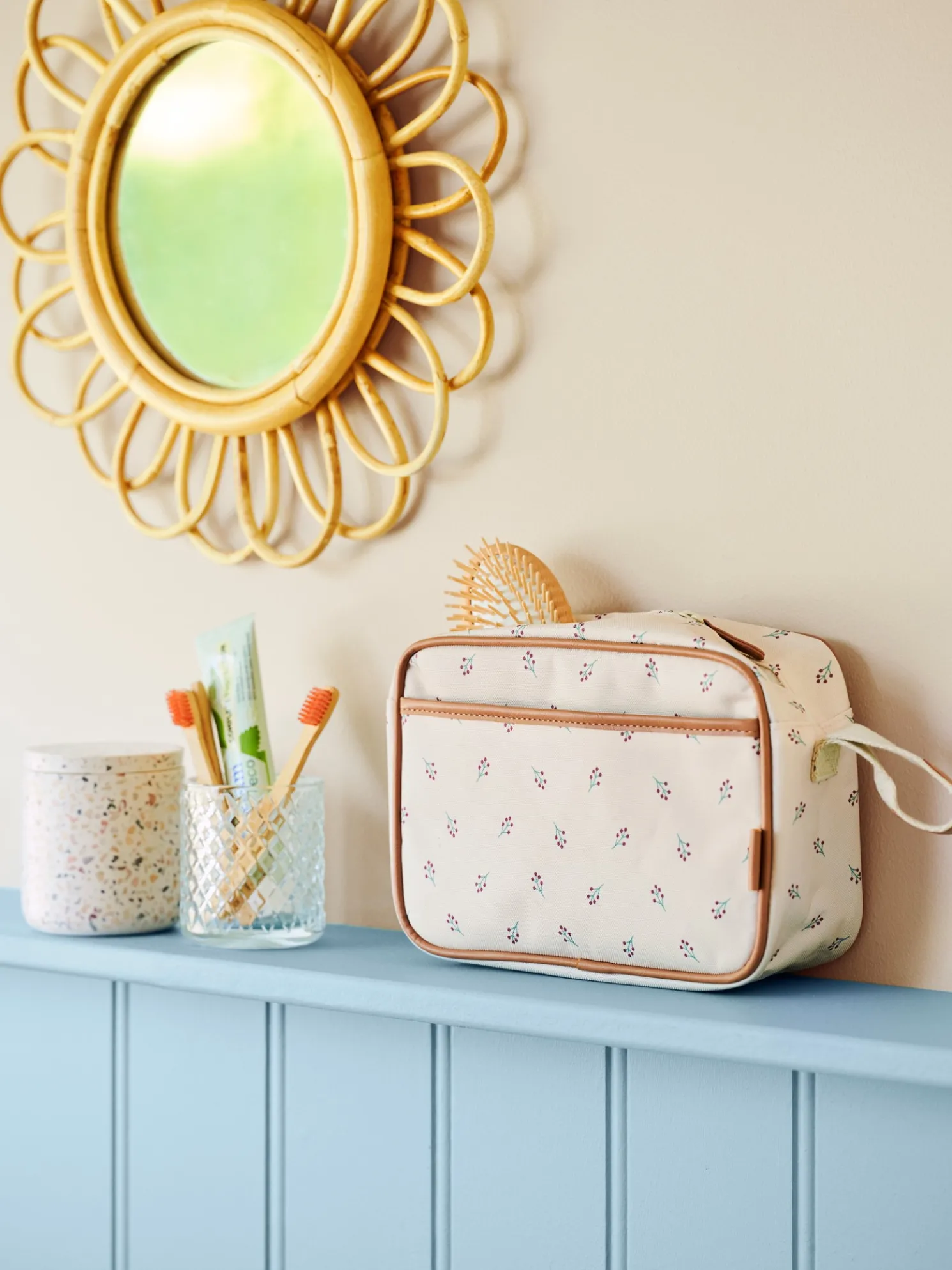 Dieser Kulturbeutel von Fresk misst 24 x 17 x 7 cm.„Verbringen Sie ein Wochenende mit Ihren Lieben oder gehen Sie auf ein Solo-Abenteuer und packen Sie alles Wesentliche in diesen schönen Kulturbeutel“, schlägt Clara vor. „Er hat zwei praktische Taschen, eine mit Reißverschluss auf der Innenseite und eine mit Magnetverschluss auf der Außenseite.“„Sie können ihn sogar mit anderen Fresk-Produkten mit süßen Motiven kombinieren“, fügt Anna hinzu.