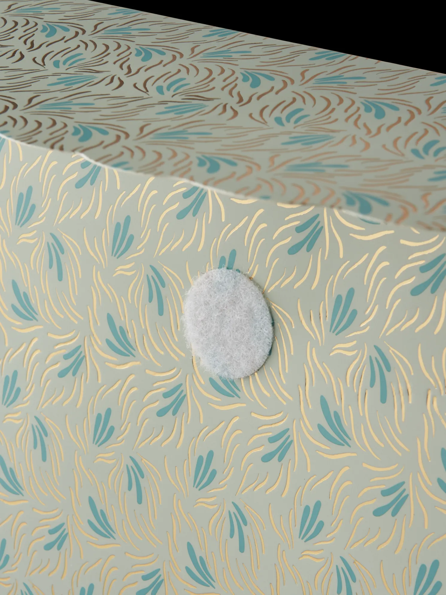 Die Geschenktüte der Schwestern besteht aus FSC®-zertifiziertem Papier und verfügt über einen kleinen Klettverschluss zum einfachen Verschließen und Öffnen, wodurch die Geschenktüte wiederverwendbar ist.