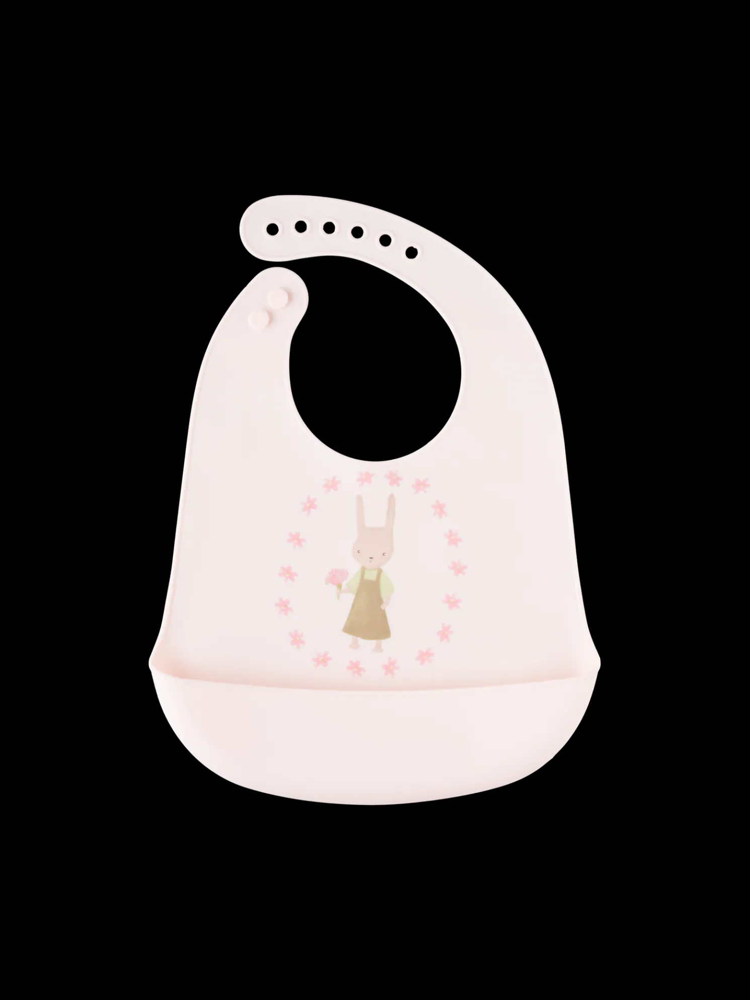 Das Lätzchen der Schwestern besteht aus Silikon und misst 31 x 23 cm.