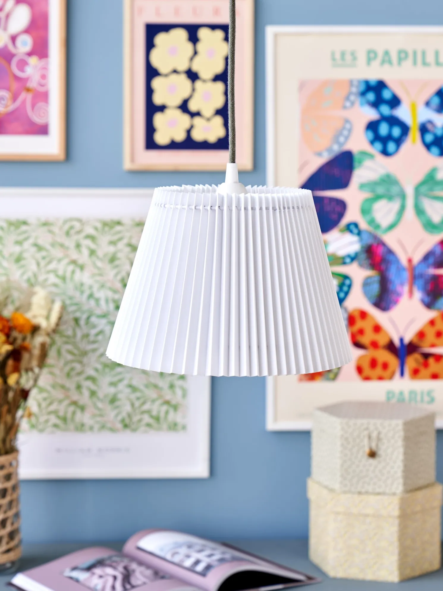 Die Schwestern weisen freundlich darauf hin, dass dieses Produkt nur online erhältlich ist. Dieser schöne plissierte Lampenschirm, genannt Emma Villa, von Nielsen Light besteht aus Baumwolle und misst 25 cm im Durchmesser und 16,5 cm in der Höhe. Er ist dank des Lampenschirmgestells mit Deckenleuchten kompatibel. „Stylen Sie Ihre Deckenleuchte und verleihen Sie ihr mit diesem klassischen und eleganten Lampenschirm einen neuen Ausdruck“, schlagen die Schwestern vor.