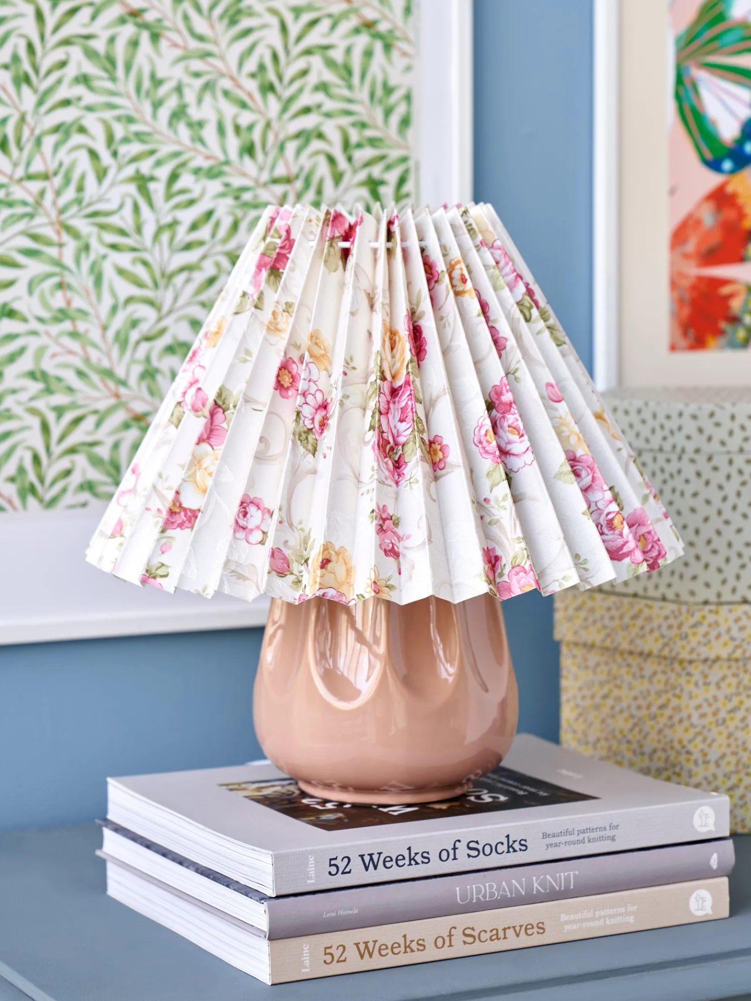 Die Schwestern weisen freundlich darauf hin, dass dieses Produkt nur online erhältlich ist. Dieser schöne plissierte Lampenschirm, genannt Rosenborg Hacienda, von Nielsen Light besteht aus Baumwolle und misst 33 cm im Durchmesser und 19 cm in der Höhe. Er ist dank seiner Clip-On-Funktion mit E27 Lampensockeln kompatibel. „Stylen Sie Ihre Tisch- oder Wandleuchte und verleihen Sie ihr mit diesem klassischen und eleganten Lampenschirm einen neuen Ausdruck“, schlagen die Schwestern vor.