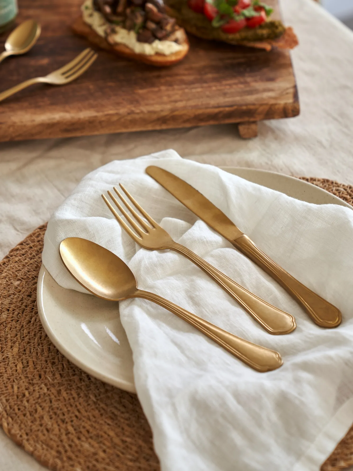 Die Schwestern weisen freundlich darauf hin, dass dieses Produkt nur online erhältlich ist.Dieses schöne Messer von Neva ist aus Edelstahl mit einer goldenen PVD-Beschichtung gefertigt. Das Messer hat eine Länge von 24 cm.Anna und Clara wissen, dass Besteck ein wesentliches Element eines jeden kulinarischen Erlebnisses ist, das sowohl Funktionalität als auch Ästhetik verkörpert. Die richtige Tischdeko kann Wunder bewirken, finden sie, und die Sammlung von Messern, Gabeln, Löffeln und mehr der italienischen Marke Neva war ein wunderbarer Fund für die Schwestern.„Besteck ist nicht nur ein Werkzeug zum Essen; es ist eine Verlängerung des eigenen Stils“, bemerkt Anna, während sie sorgfältig den Tisch für ein Abendessen mit Freunden deckt. „Jedes Besteckteil spricht Bände über das Kunsthandwerk, das dahinter steckt“, fügt Clara mit einem Lächeln hinzu.Lassen Sie das elegante Besteckset Ihr nächstes kulinarisches Erlebnis in neue Höhen tragen.