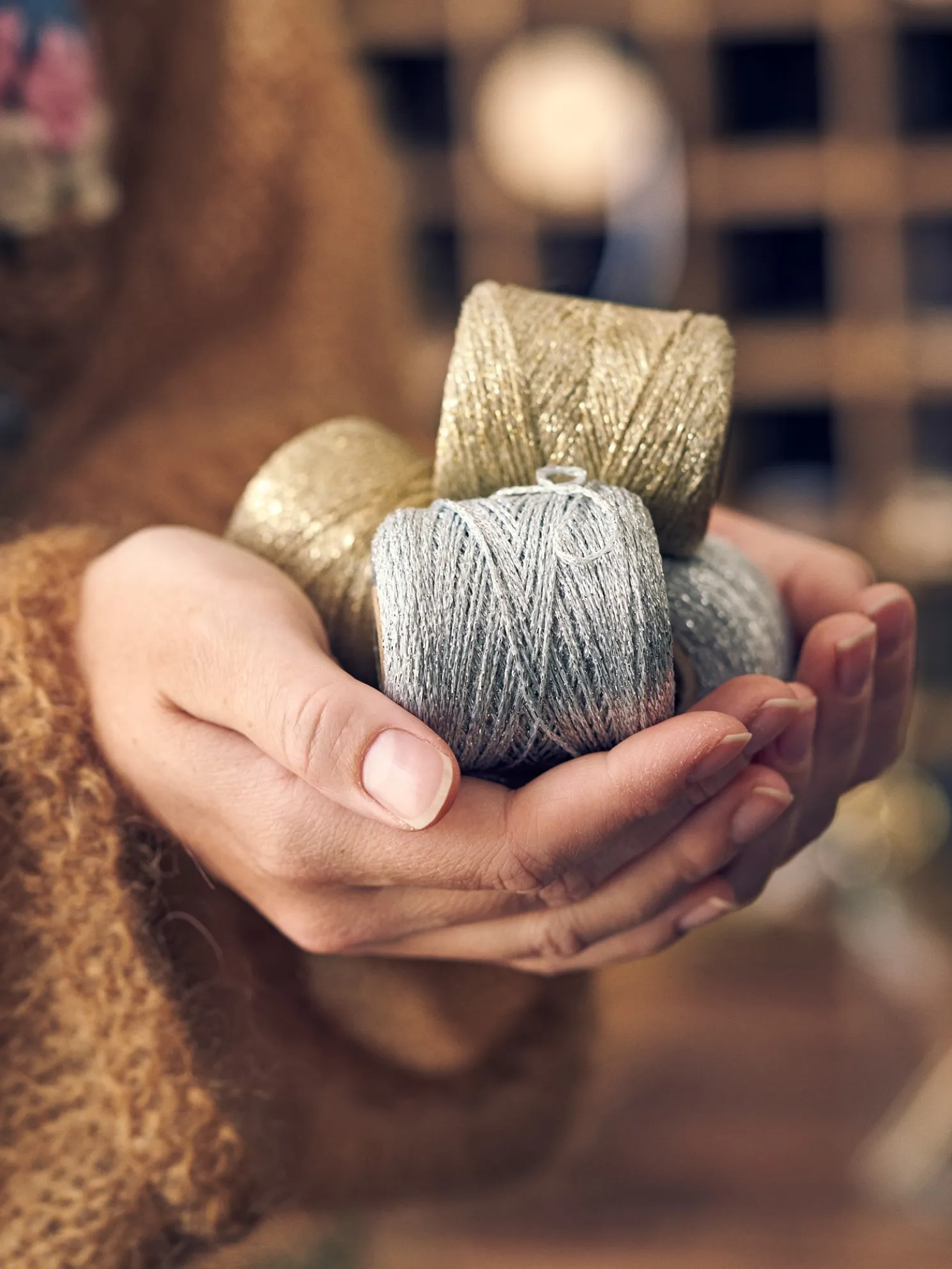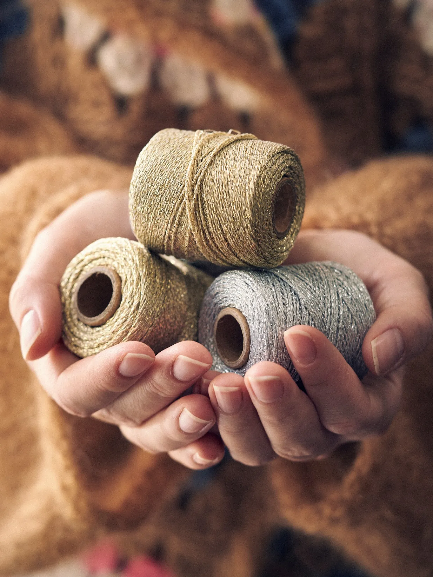 Das Metallic-Garn der Schwestern besteht aus STANDARD 100 by OEKO-TEX®-zertifizierter* Baumwolle und Polyester. Es hat eine Länge von 180 m und wiegt 25 g.