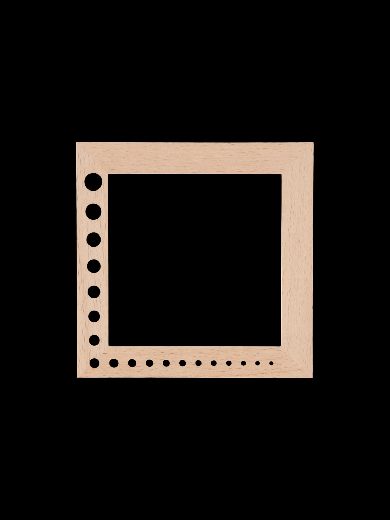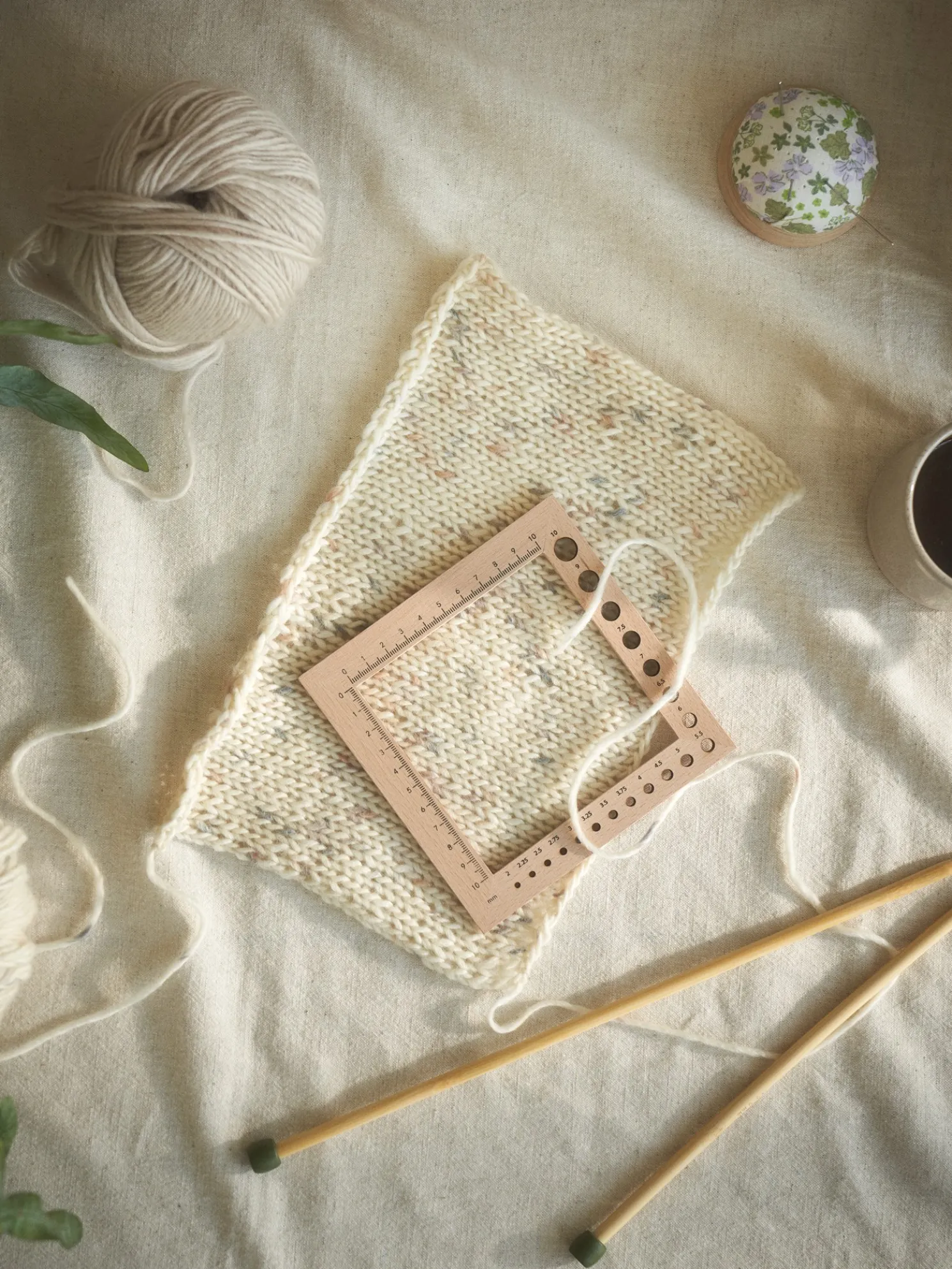 Das Nadelmaß der Schwestern besteht aus Birkenholz und misst 13,5 x 13,5 cm.