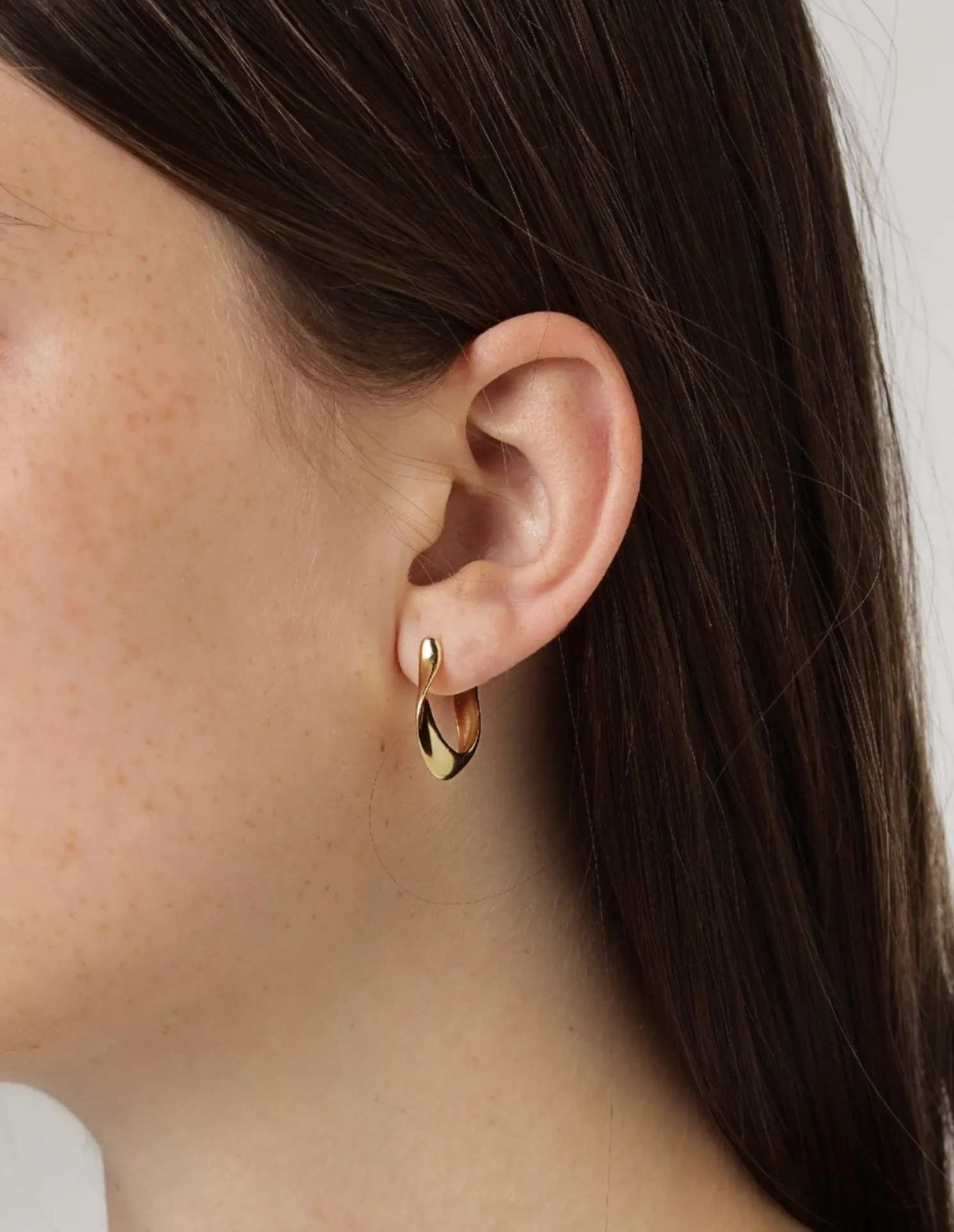 Die Schwestern machen freundlich darauf aufmerksam, dass dieser Artikel nur online erhältlich ist. Die Ohrringe Nana sind aus 925er Sterlingsilber gefertigt und mit 18-Karat-Gold vergoldet. Die beiden Ohrringe haben einen Durchmesser von 17 mm und werden in einer hübschen kleinen Schmuckschatulle verpackt. „Mal eine andere Version der klassischen Creolen“, meint Anna lächelnd. Anna und Clara möchten Sie darauf hinweisen, den direkten Kontakt mit Feuchtigkeit und Flüssigkeiten zu vermeiden, um die Haltbarkeit des Goldbelags zu verlängern.