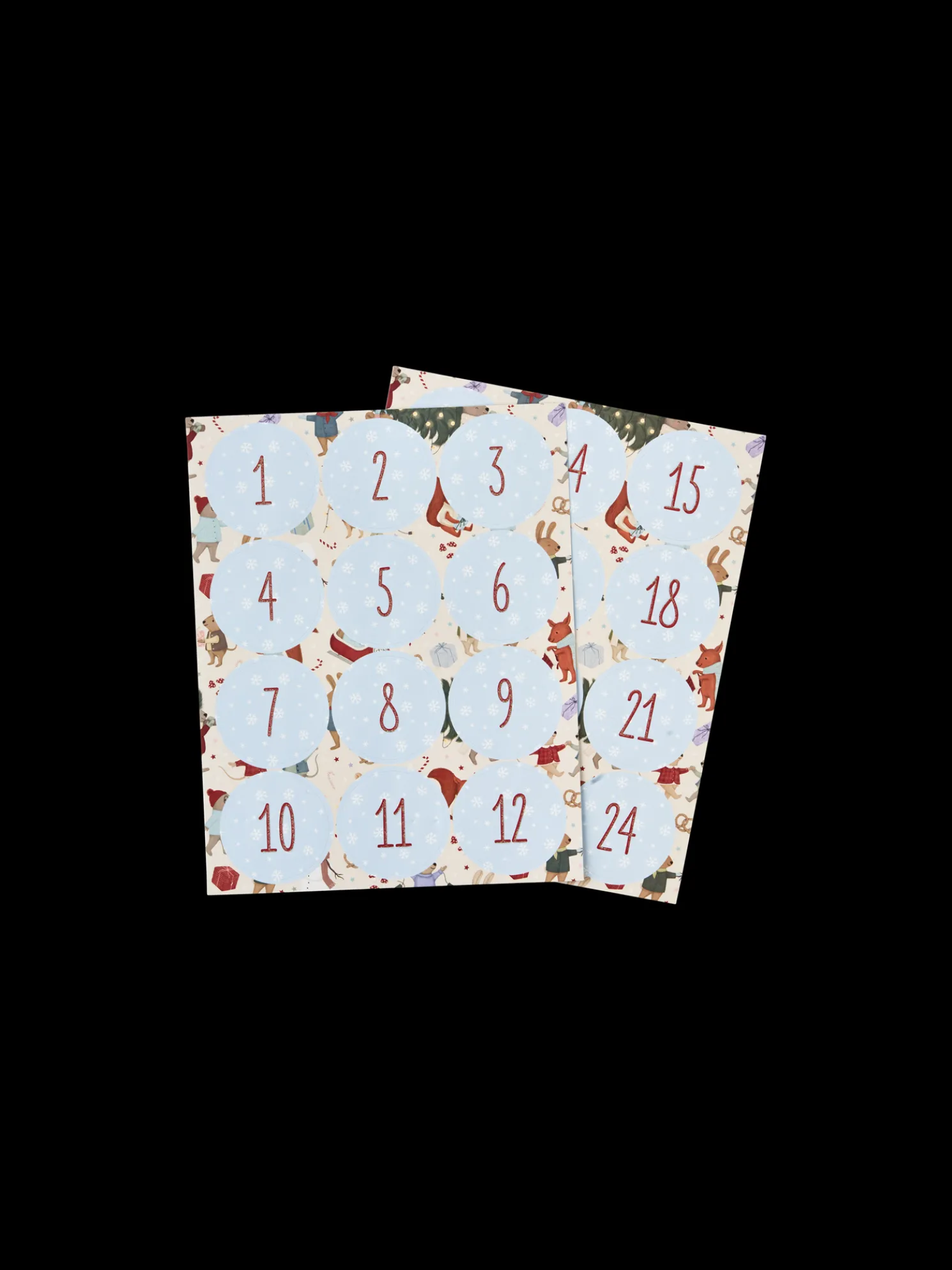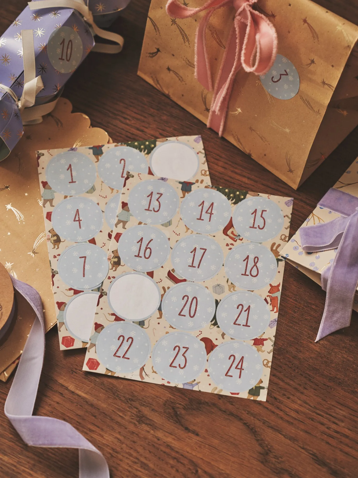 Die Nummernaufkleber der Schwestern sind FSC®-zertifiziert. Die 2 Bögen haben durchsichtige Aufkleber in den Nummern 1 bis 24, ideal für Adventsgeschenke.