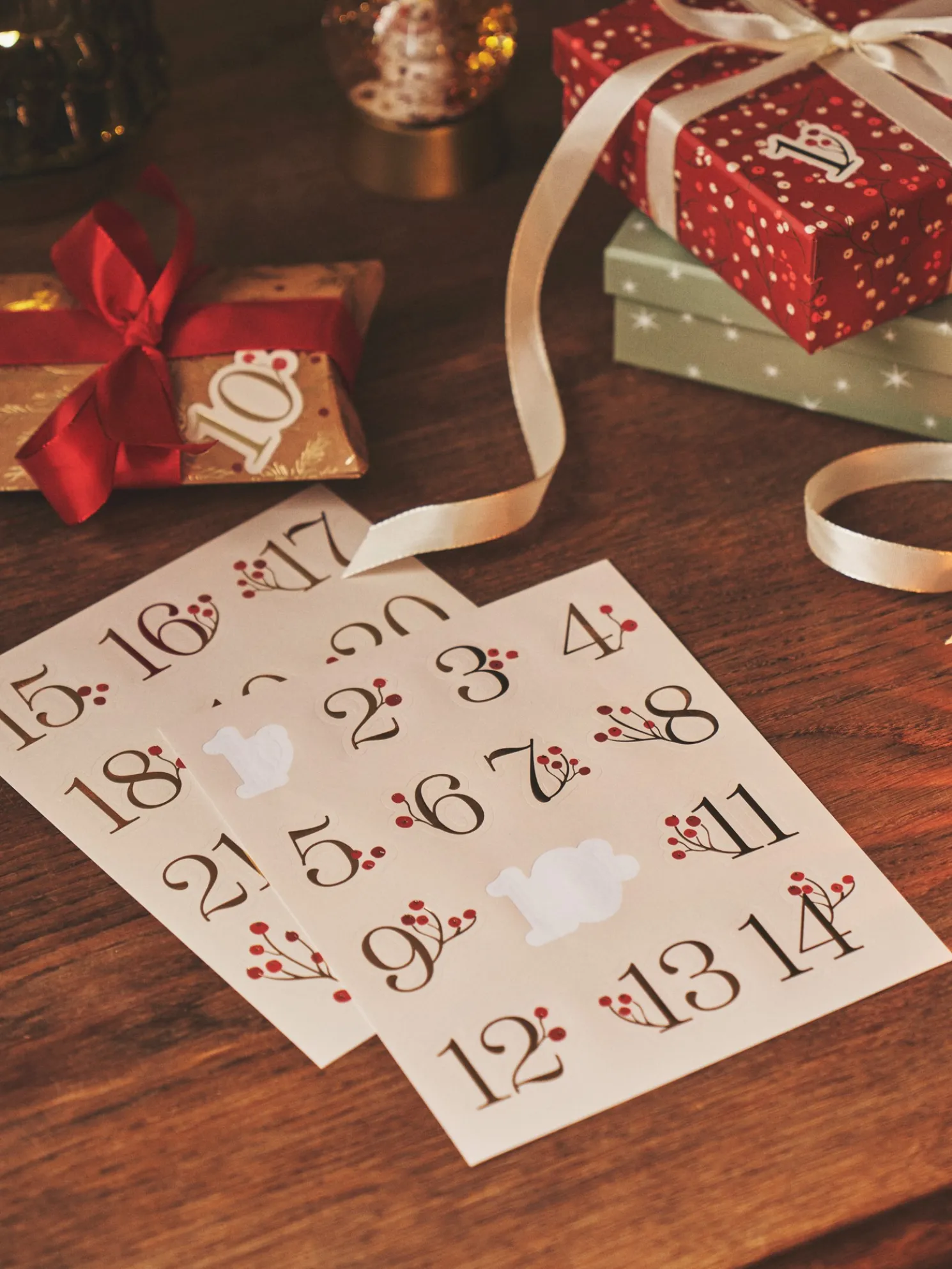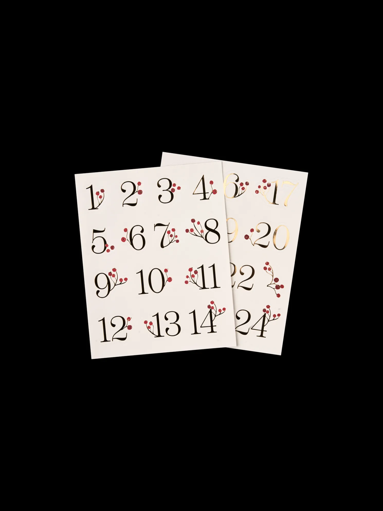 Die Nummernaufkleber der Schwestern sind FSC®-zertifiziert. Die 2 Bögen haben durchsichtige Aufkleber in den Nummern 1 bis 24, ideal für Adventsgeschenke.