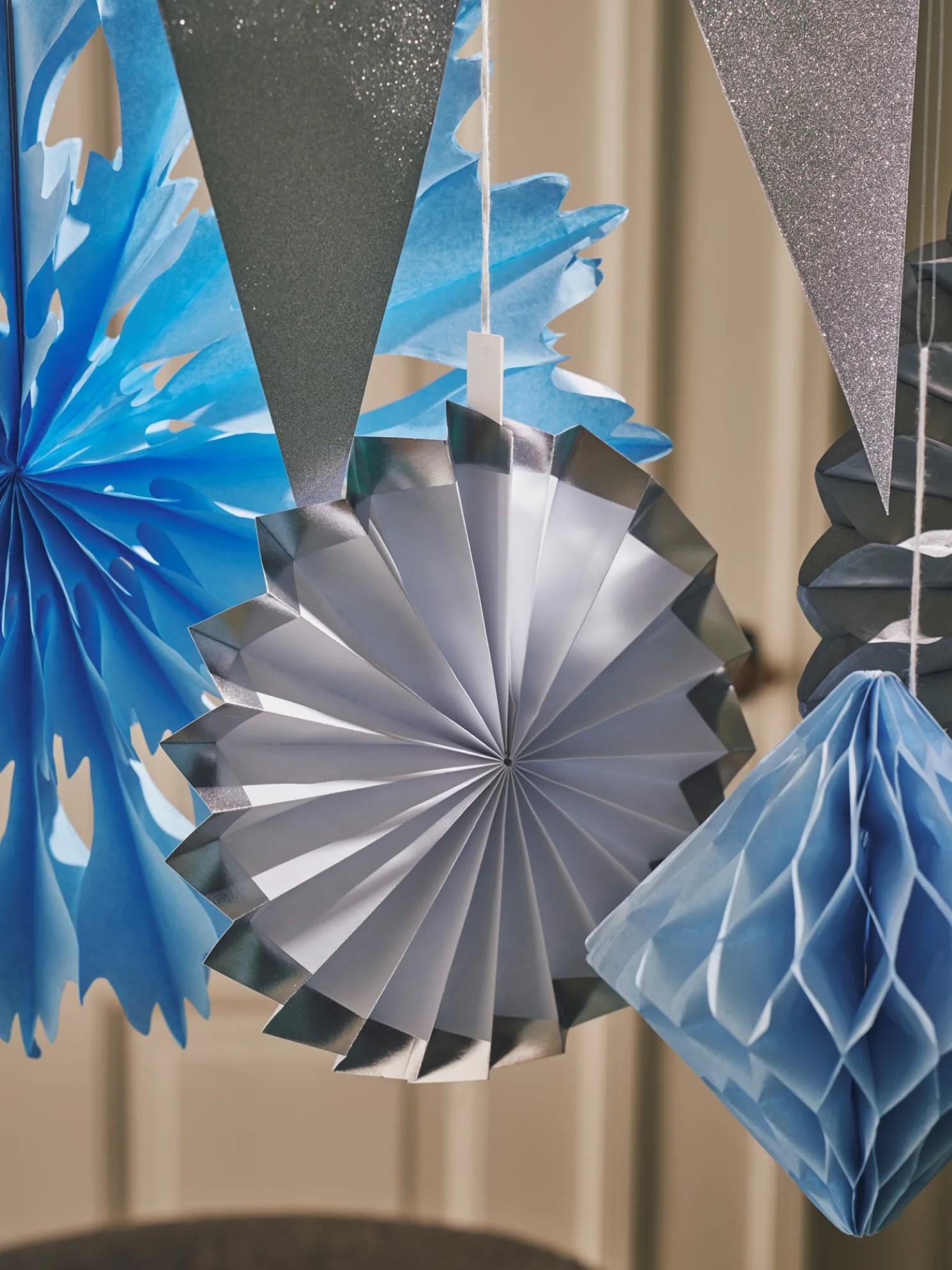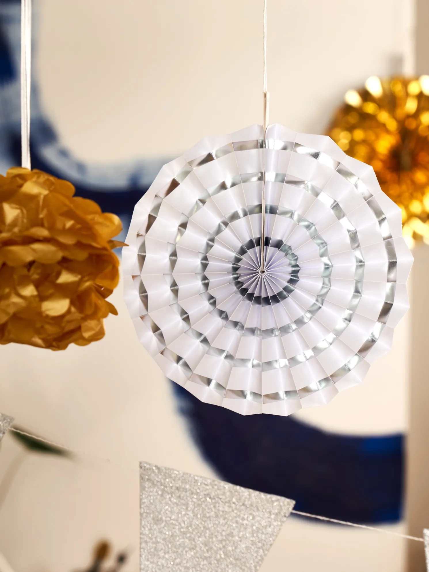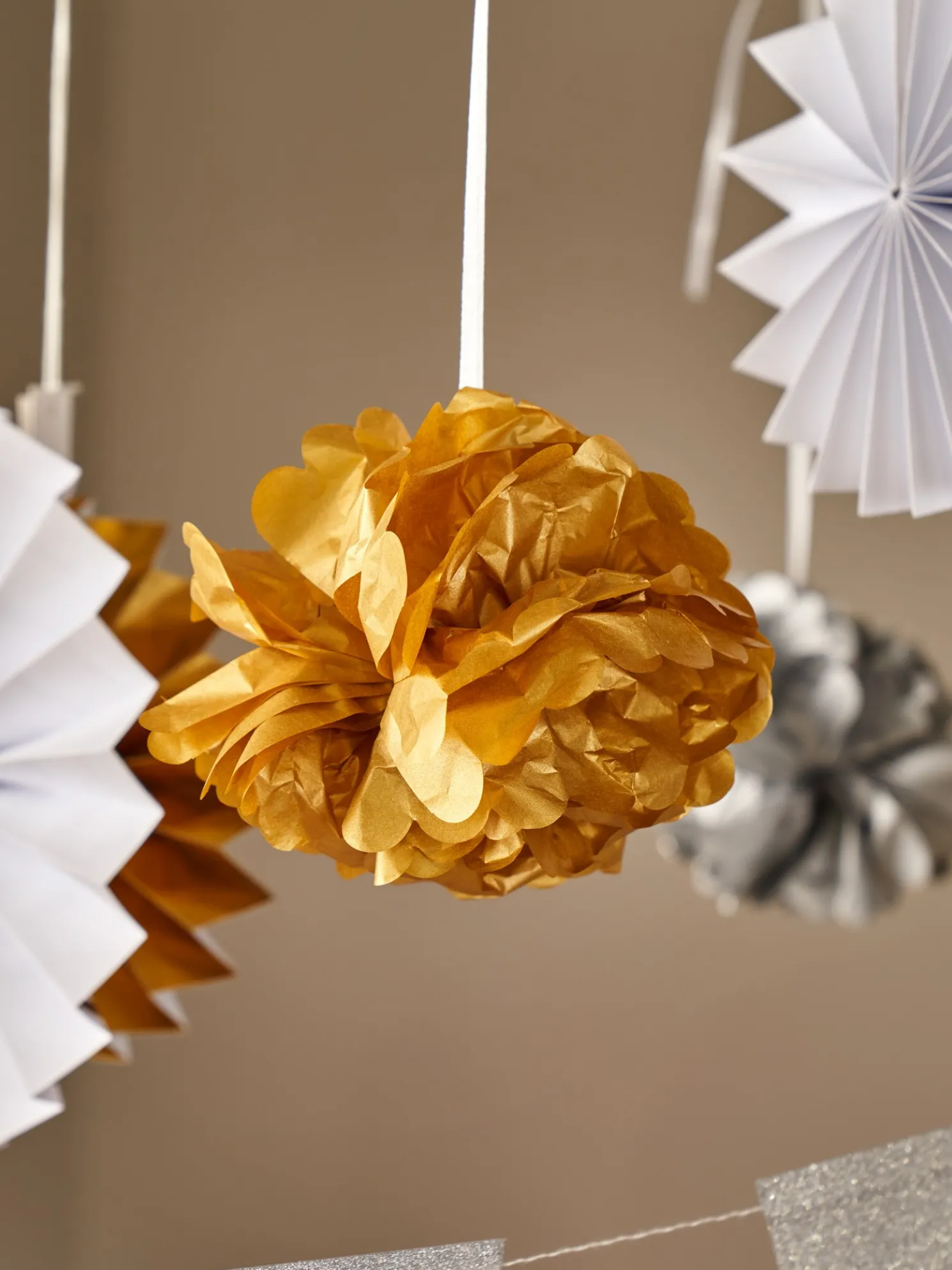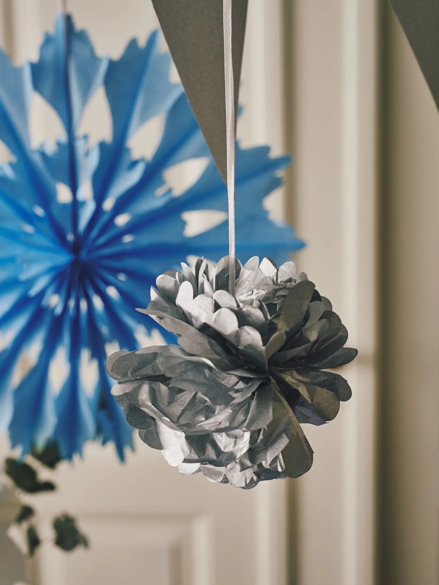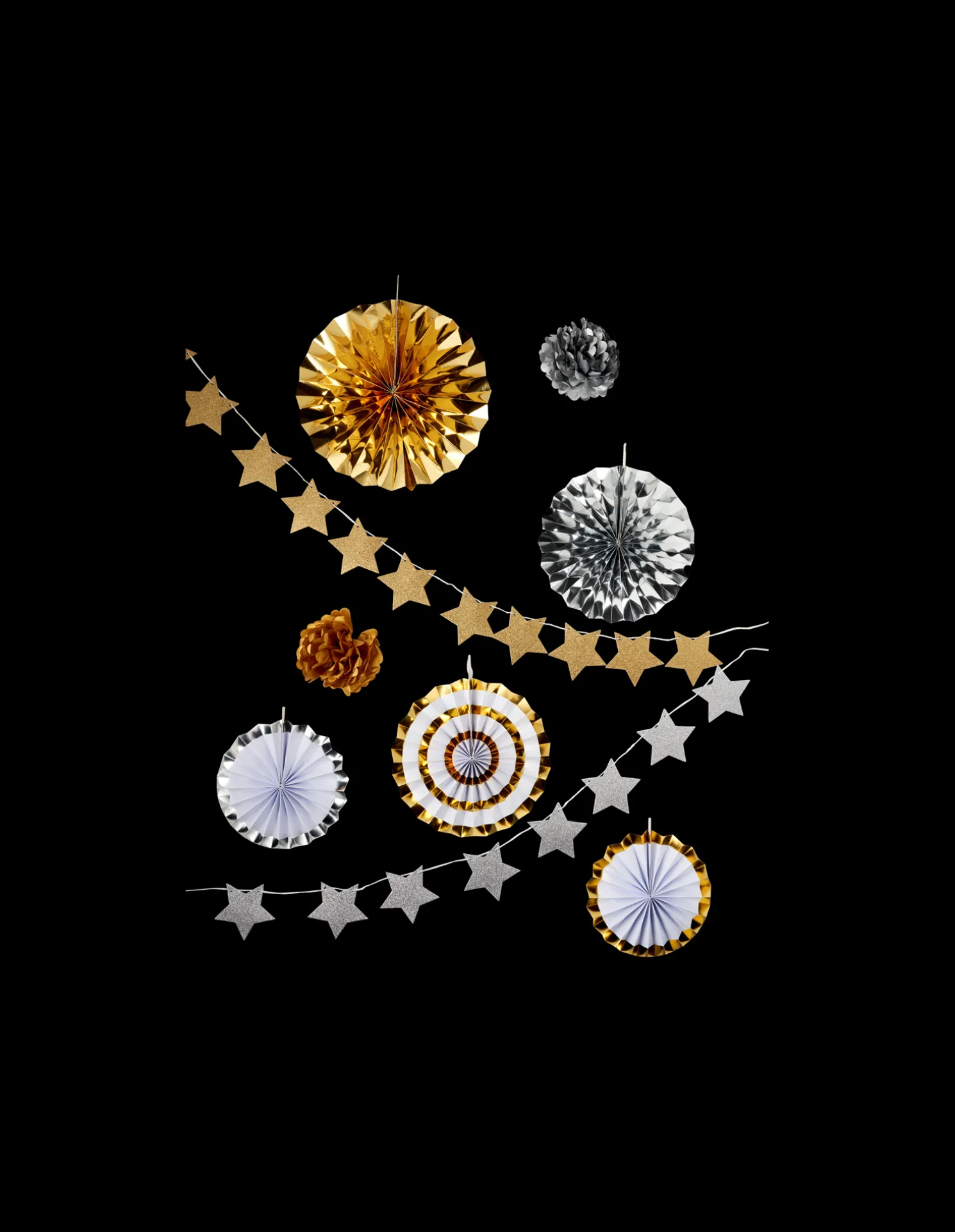 Das Party-Deko-Set der Schwestern besteht aus FSC®-zertifiziertem Papier. Das Set enthält 2 Papierblumen, 5 Papierrosetten, 1 Girlande à 1,7 m und 1 Girlande à 2,2 m.