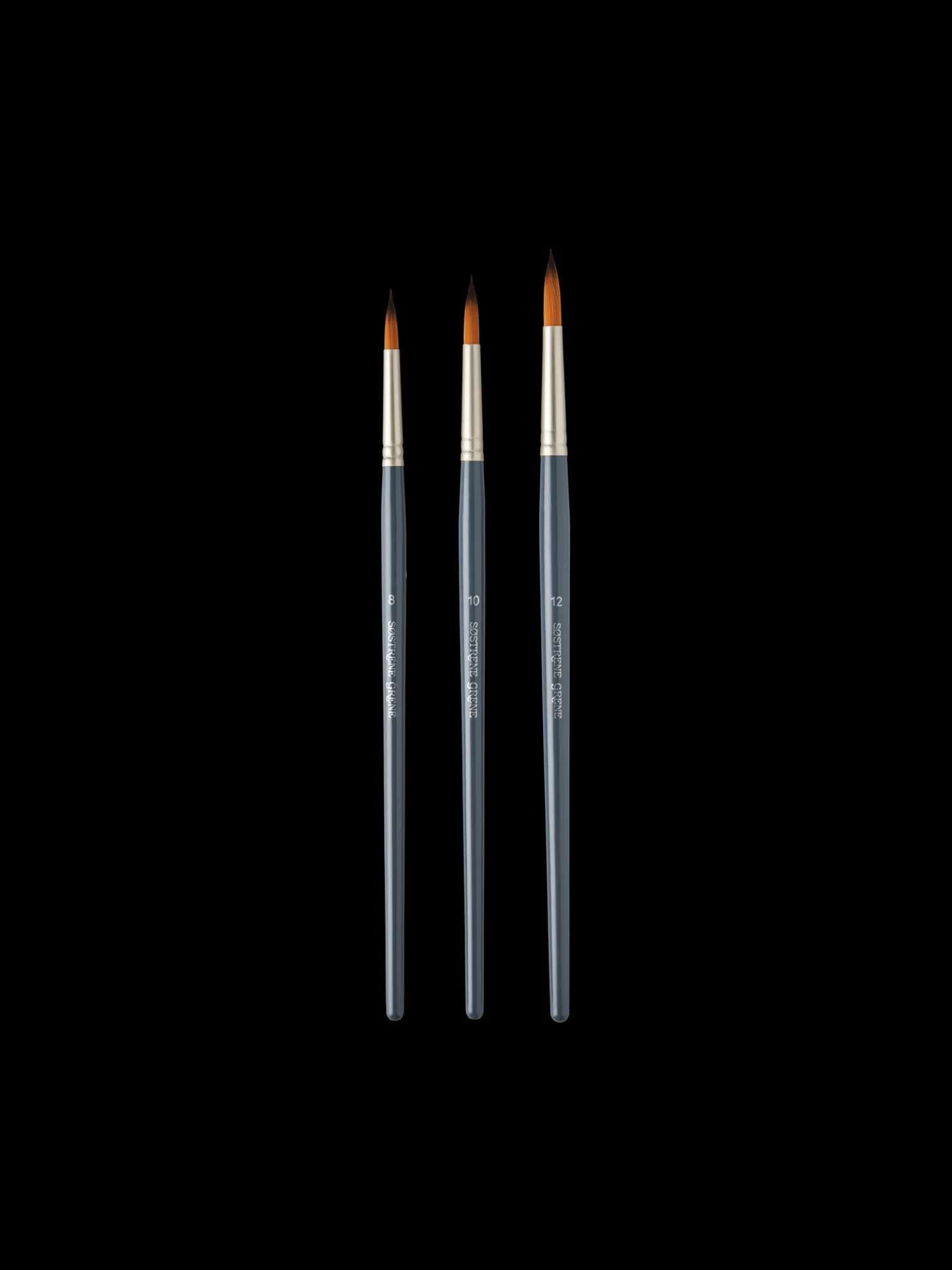 Das Pinselset der Schwestern besteht aus drei Pinseln aus FSC®-zertifiziertem Birkenholz mit Pinselhaaren aus Nylon. Die Pinsel sind in den Größen 8, 10 und 12. Sie sind ideal für Aquarellfarben.
