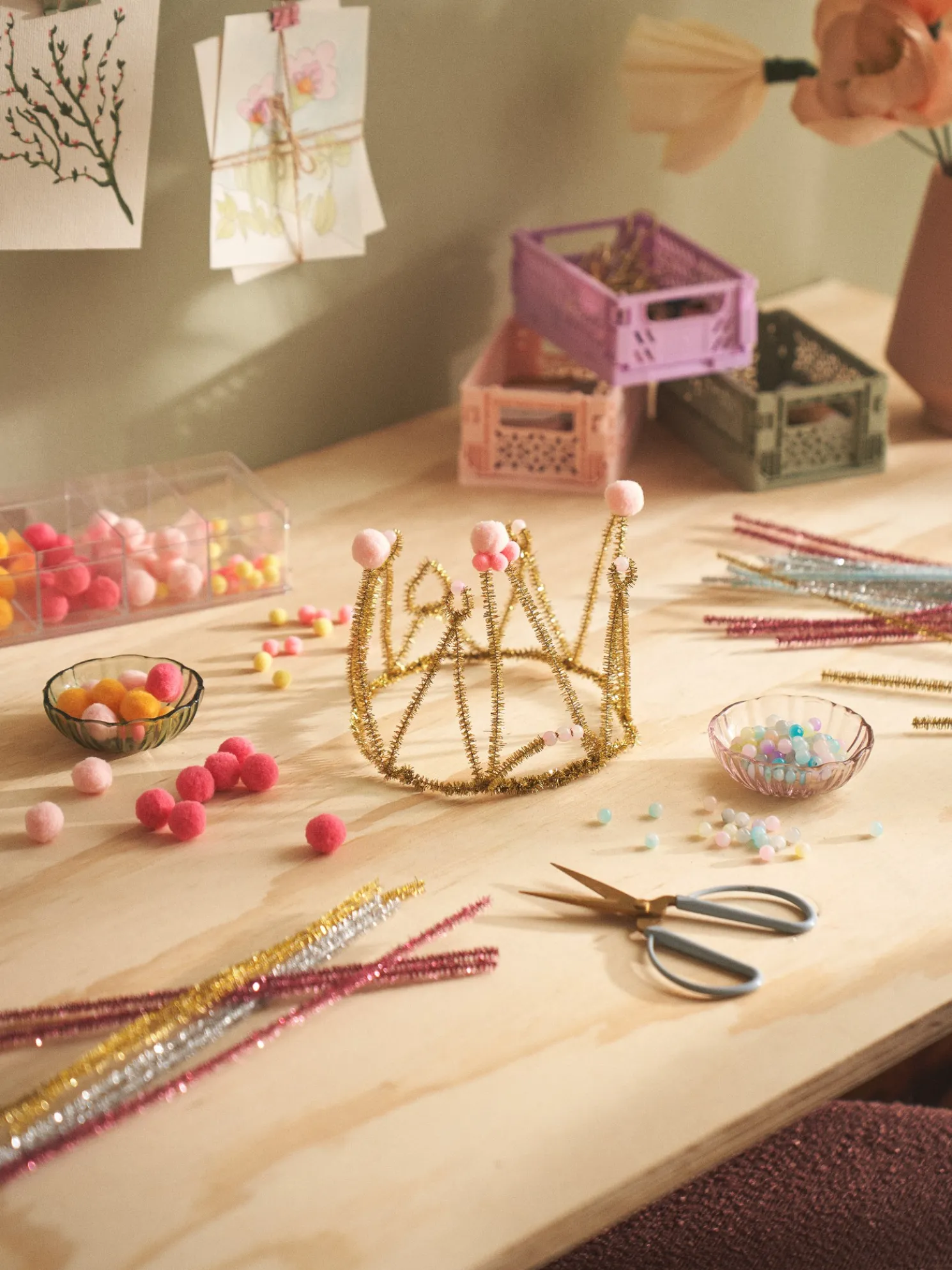 Die Pompons der Schwestern werden in einer Packung mit verschiedenen Größen und Farben geliefert.