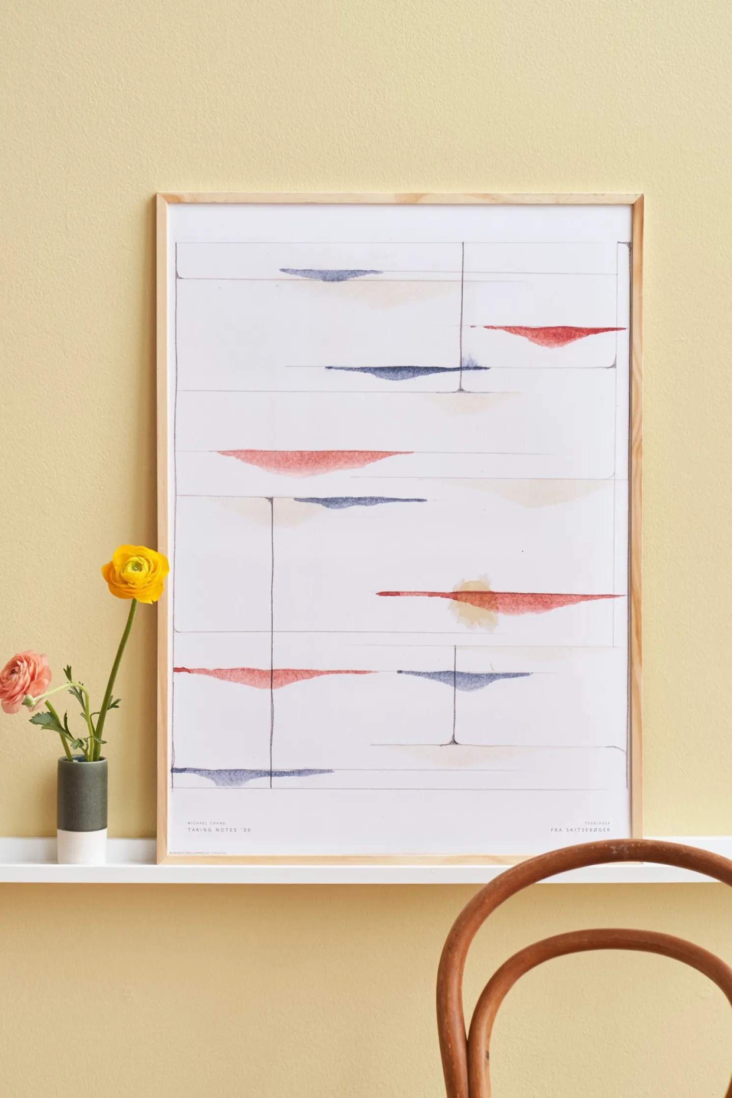 Die Schwestern weisen freundlich darauf hin, dass dieses Produkt nur online erhältlich ist.Das Paperlike-Poster von Permild & Rosengreen ist auf mattem 230 g Papier gedruckt und misst 50 x 70 cm. Die Illustration stammt von Michael Chang.Anna und Clara lieben es, schöne Kunst an ihren Wänden zu haben, nicht nur, um ihr Zuhause zu schmücken, sondern auch, um ihre kreativen Projekte zu inspirieren.„Ich könnte mich in diesem abstrakten Kunstwerk verlieren“, sagt Anna, während sie dieses Poster in ihrem Hobbyraum aufhängt. „Es lässt die Gedanken schweifen.“