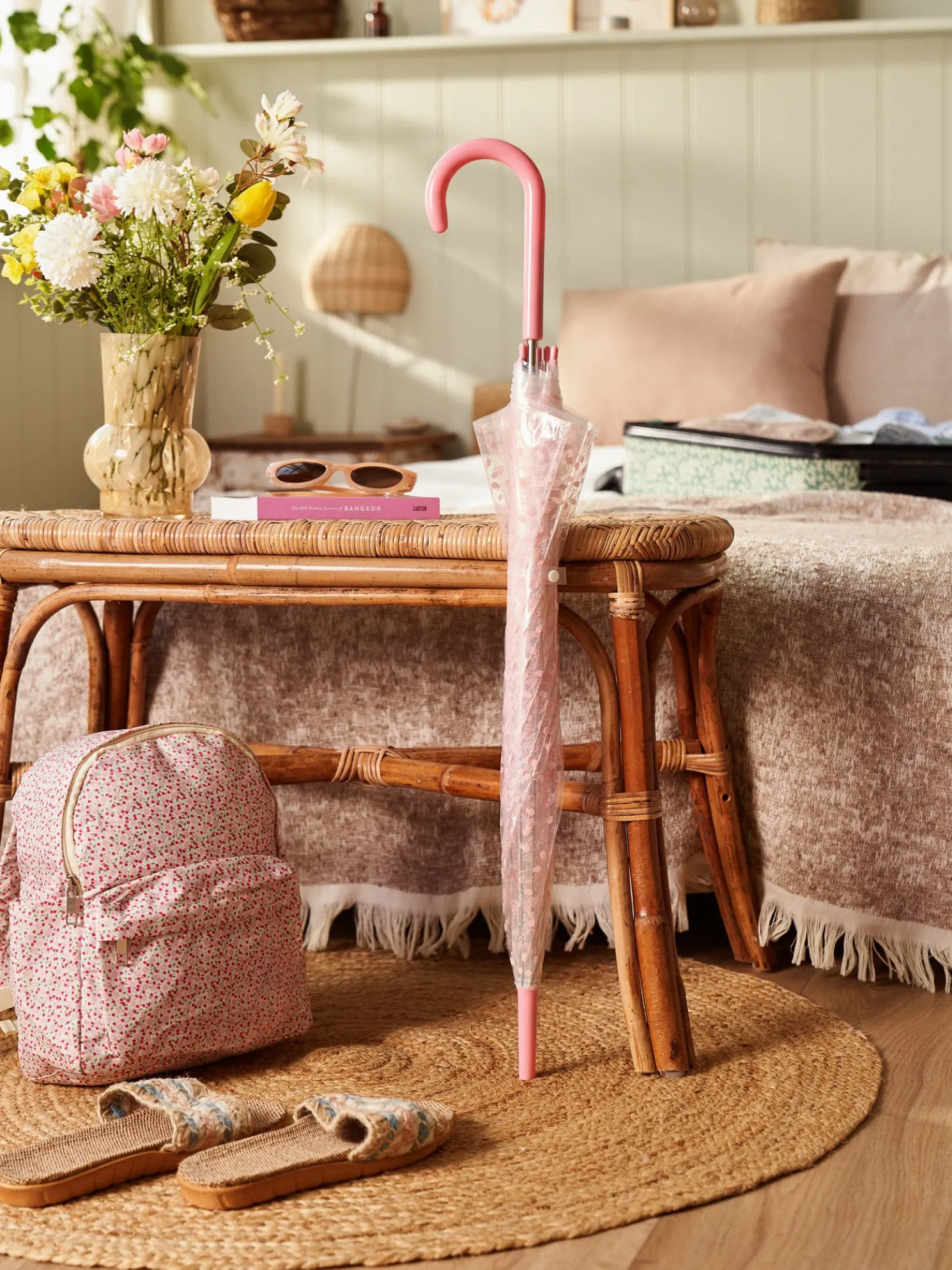 Der Regenschirm der Schwestern ist an regnerischen Tagen ein hübscher Begleiter. Er hat einen Durchmesser von 73 cm, wenn er geöffnet ist.