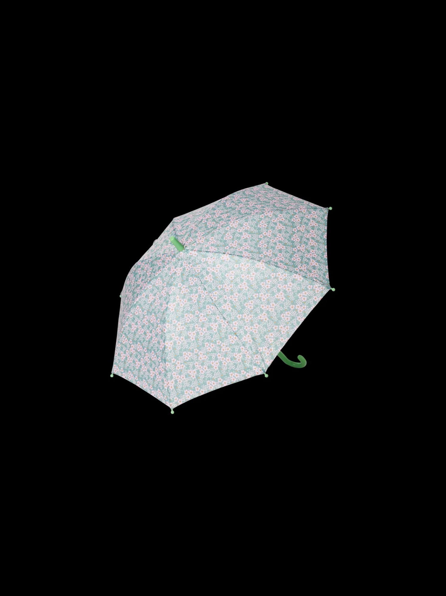 Der Regenschirm der Schwestern ist an regnerischen Tagen ein hübscher Begleiter. Er hat einen Durchmesser von 75 cm, wenn er geöffnet ist.