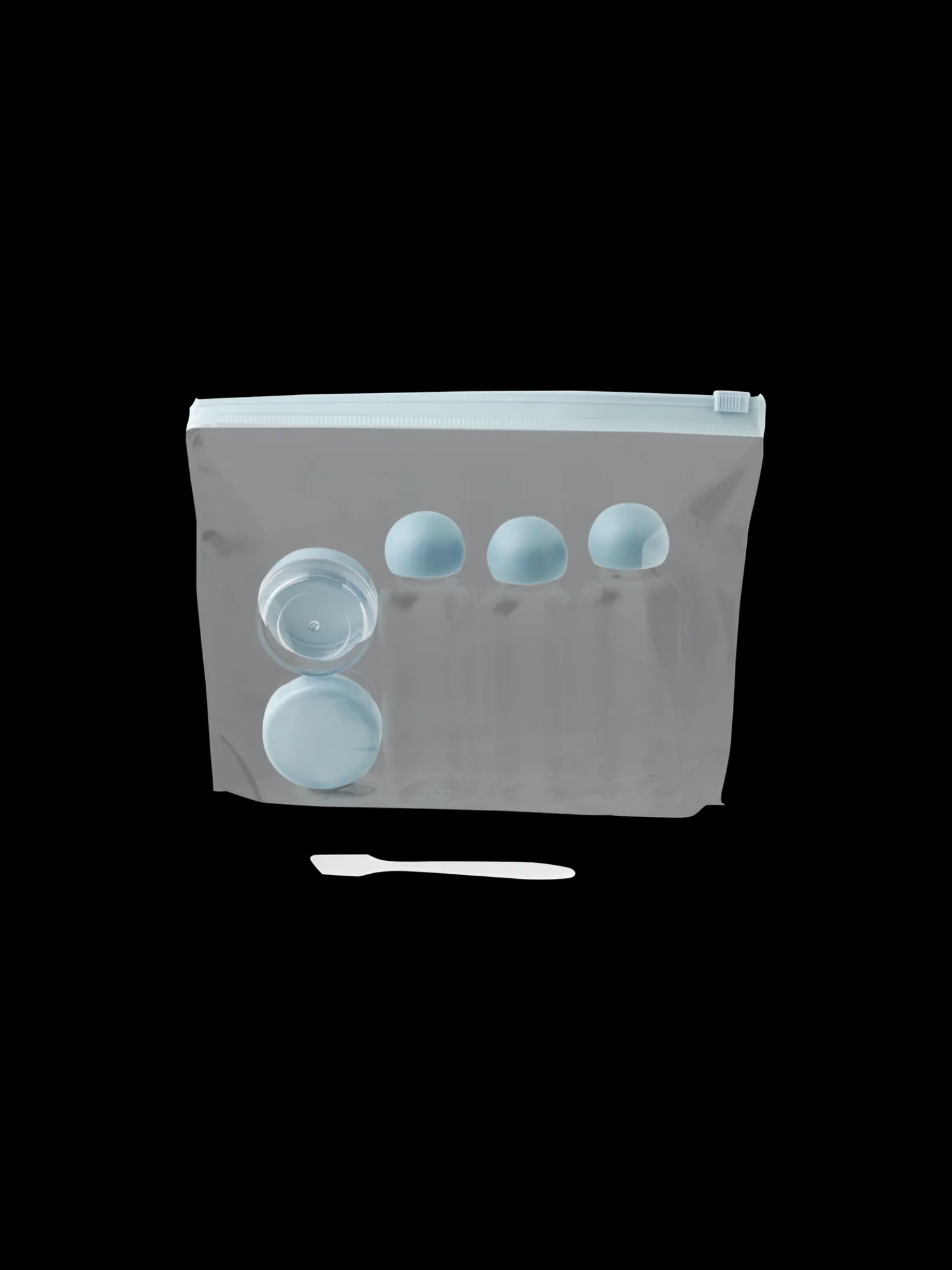 Das Reisebehälter-Set der Schwestern besteht aus fünf Behältern und einem kleinen Löffel in einem durchsichtigen Beutel.