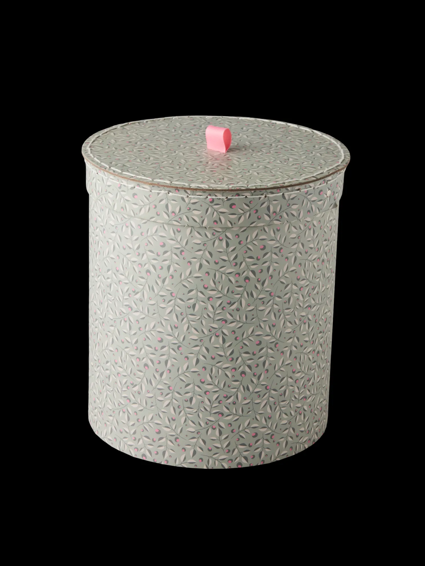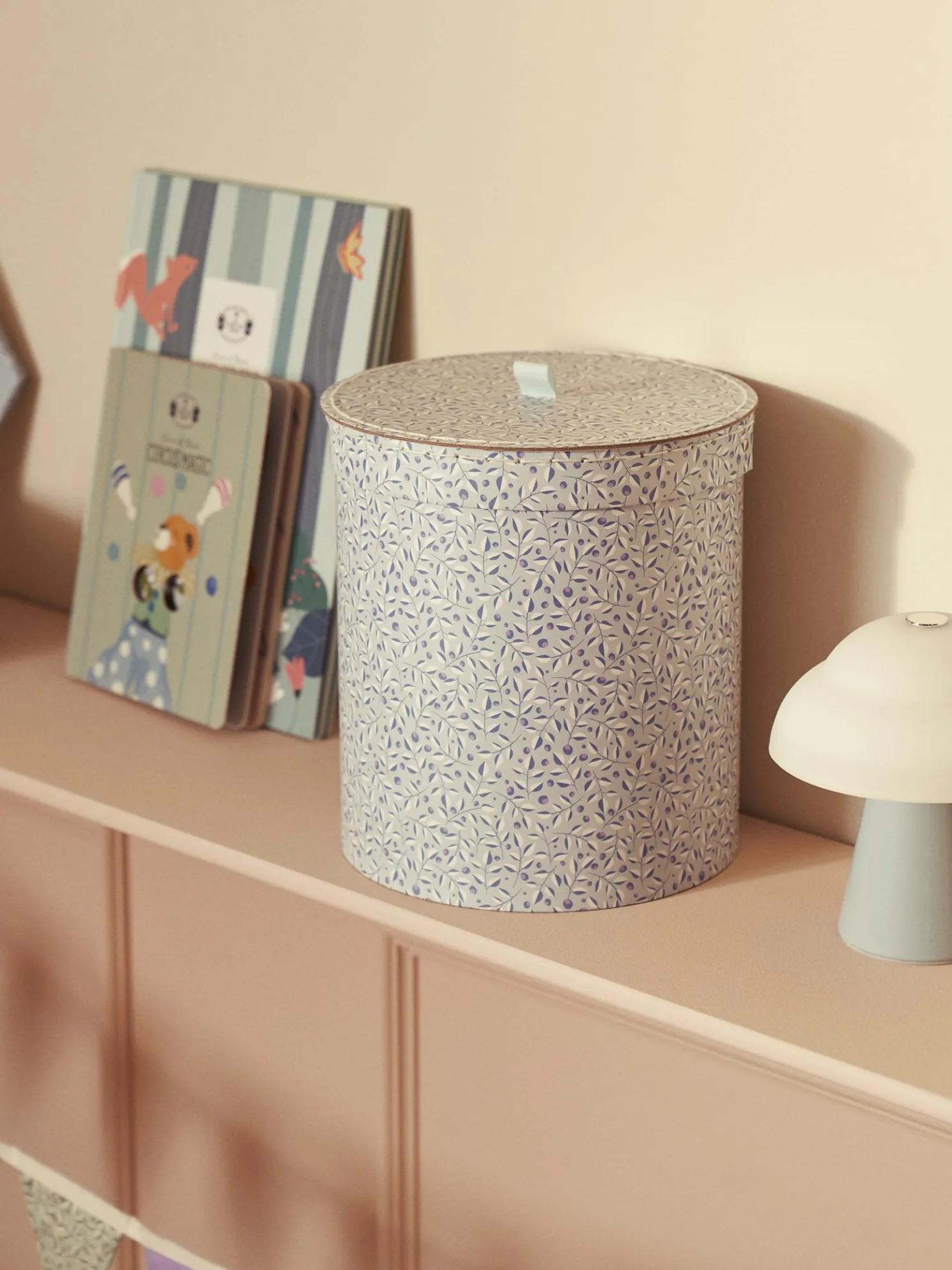 Die runde Aufbewahrungsbox der Schwestern besteht aus FSC®-zertifiziertem Karton.Clara empfiehlt, dass Sie sie verwenden, um Kleinigkeiten oder kleine Bastelutensilien darin aufzubewahren, oder sie sogar als Geschenkverpackung zu verwenden.