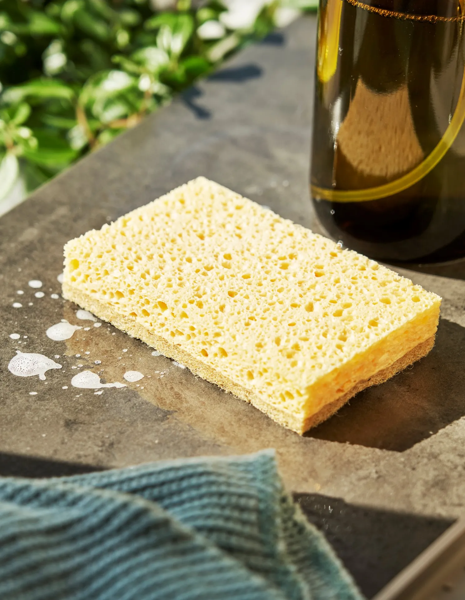 Der Scheuerschwamm der Schwestern besteht aus Zellulose und eignet sich ideal zum Schrubben von Geschirr, Töpfen, Pfannen und mehr.