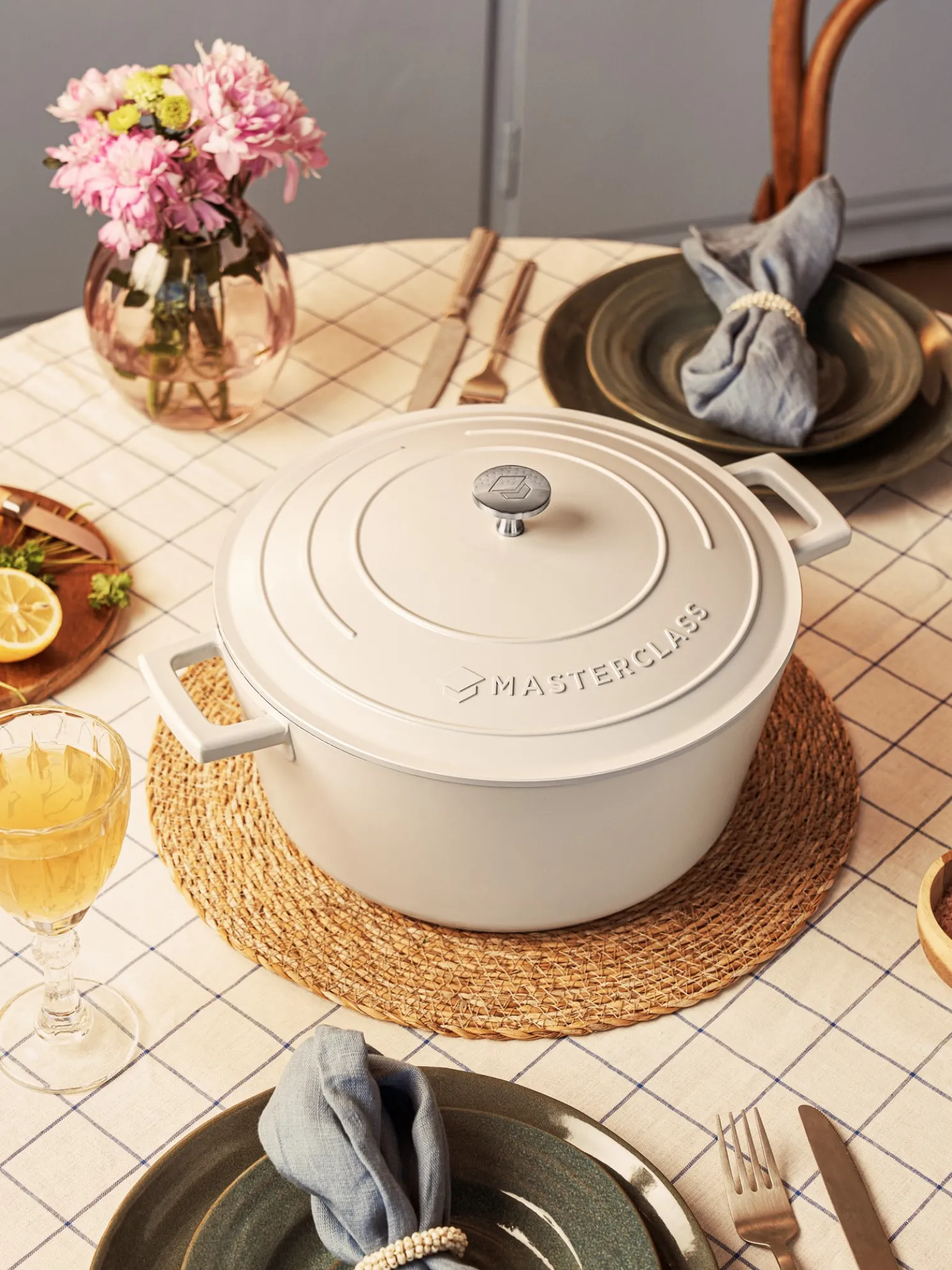 Dieser Schmortopf von MasterClass besteht aus Aluminiumguss, einem leichteren Material als Gusseisen, das ein schnelles und gleichmäßiges Garen von Speisen ermöglicht. Er hat ein Fassungsvermögen von 4 Liter. Der Edelstahlboden ermöglicht eine einfache Verwendung auf jeder Kochplatte, einschließlich Induktion, und ist außerdem bis 200 °C backofenfest. Der Schmortopf verfügt über einen Knopf und zwei Griffe sowie einen selbstbefeuchtenden Deckel, der Dampf auffängt, während er sich aufbaut, um ein noch besseres Kocherlebnis zu erzielen. Er hat eine robuste, haltbare, kratzfeste Beschichtung, die als Antihaftbeschichtung fungiert, was auch die Reinigung erleichtert. Außerdem ist der Topf spülmaschinenfest.
