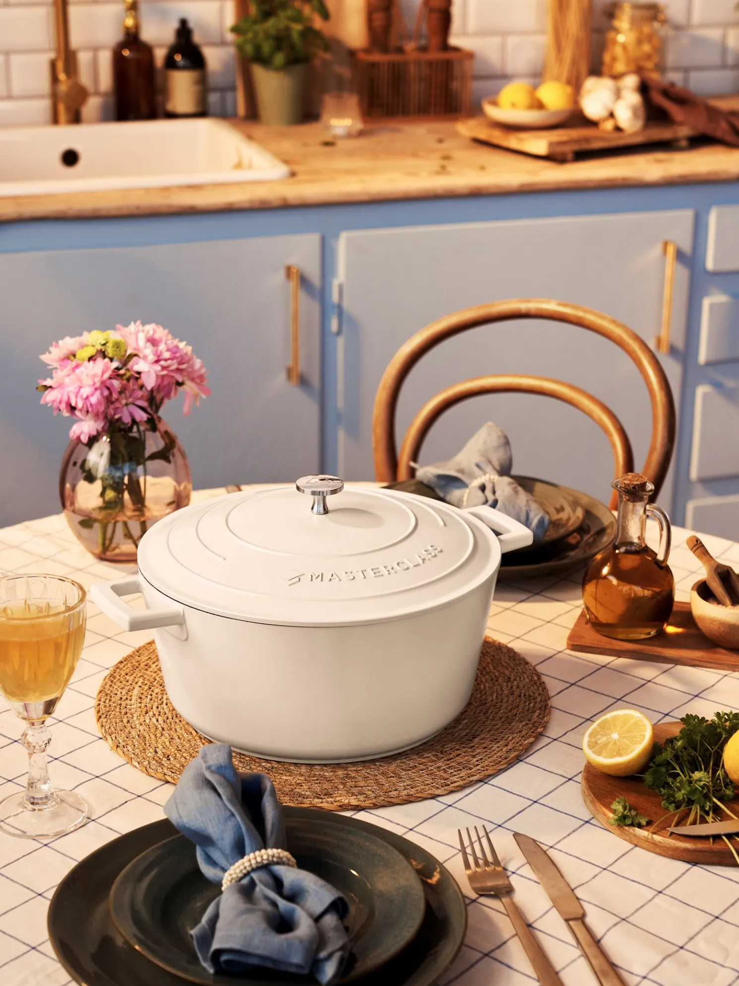 Dieser Schmortopf von MasterClass besteht aus Aluminiumguss, einem leichteren Material als Gusseisen, das ein schnelles und gleichmäßiges Garen von Speisen ermöglicht. Er hat ein Fassungsvermögen von 5 Liter. Der Edelstahlboden ermöglicht eine einfache Verwendung auf jeder Kochplatte, einschließlich Induktion, und ist außerdem bis 200 °C backofenfest. Der Schmortopf verfügt über einen Knopf und zwei Griffe sowie einen selbstbefeuchtenden Deckel, der Dampf auffängt, während er sich aufbaut, um ein noch besseres Kocherlebnis zu erzielen. Er hat eine robuste, haltbare, kratzfeste Beschichtung, die als Antihaftbeschichtung fungiert, was auch die Reinigung erleichtert. Außerdem ist der Topf spülmaschinenfest.
