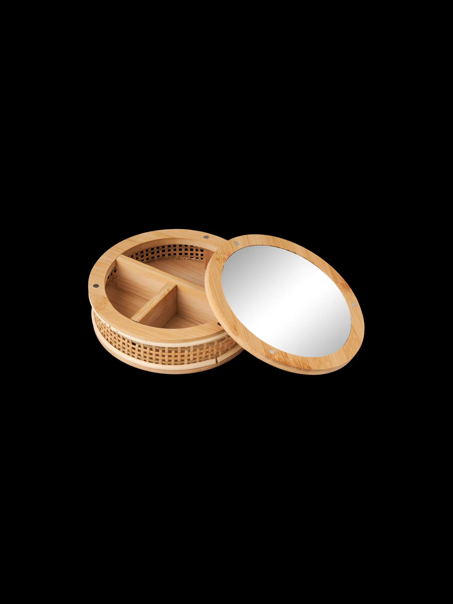 Die Schmuckschatulle der Schwestern ist aus 100 % FSC®-zertifiziertem Bambus und Glas gefertigt. Sie verfügt über einen kleinen Spiegel, in dem Sie sich selbst bewundern können.