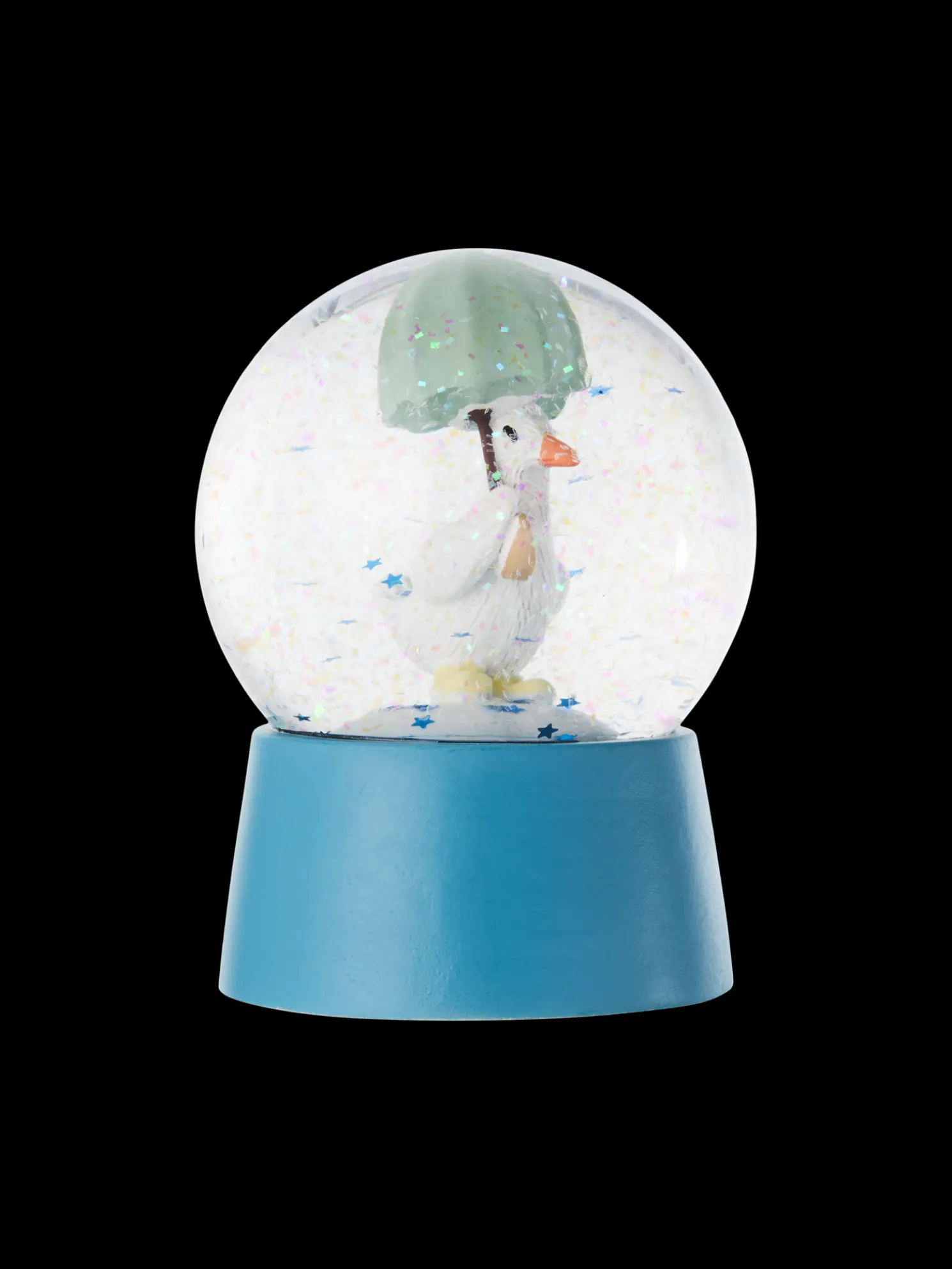 Die Schneekugelkuppel besteht aus Kunststoff, ist also nicht so zerbrechlich wie eine Glaskugel und kann als Dekoration im Kinderzimmer verwendet werden.
