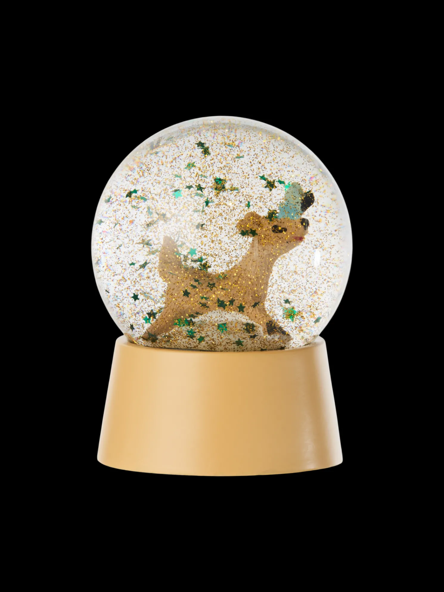 Die Schneekugelkuppel besteht aus Kunststoff, ist also nicht so zerbrechlich wie eine Glaskugel und kann als Dekoration im Kinderzimmer verwendet werden.