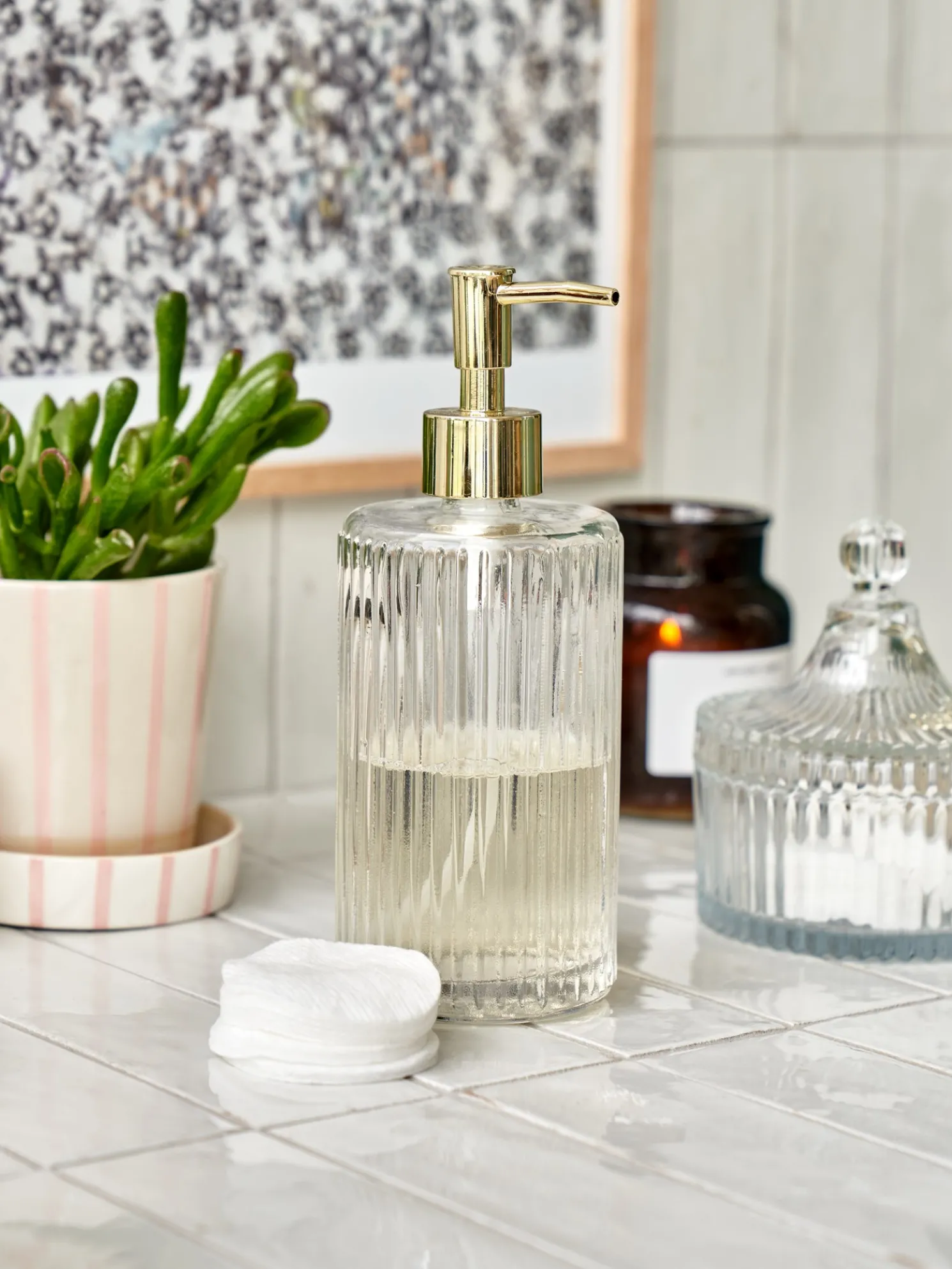 Körperpflege wird bei Anna und Clara groß geschrieben und spiegelt sich in der Auswahl der Badaccessoires in ihrem charmanten Badezimmer wider. Die Schwestern sind von diesem schönen Seifenspender und der Tatsache, dass er nachfüllbar ist, sehr angetan.„Füllen Sie den Spender mit Ihrer liebsten Flüssigseife“, empfiehlt Clara, während sie sich die Hände mit einer duftenden, schäumenden Handseife wäscht. „Eine Handseife wird mehrmals täglich verwendet und hinterlässt Ihre Hände sauber und erfrischt.“