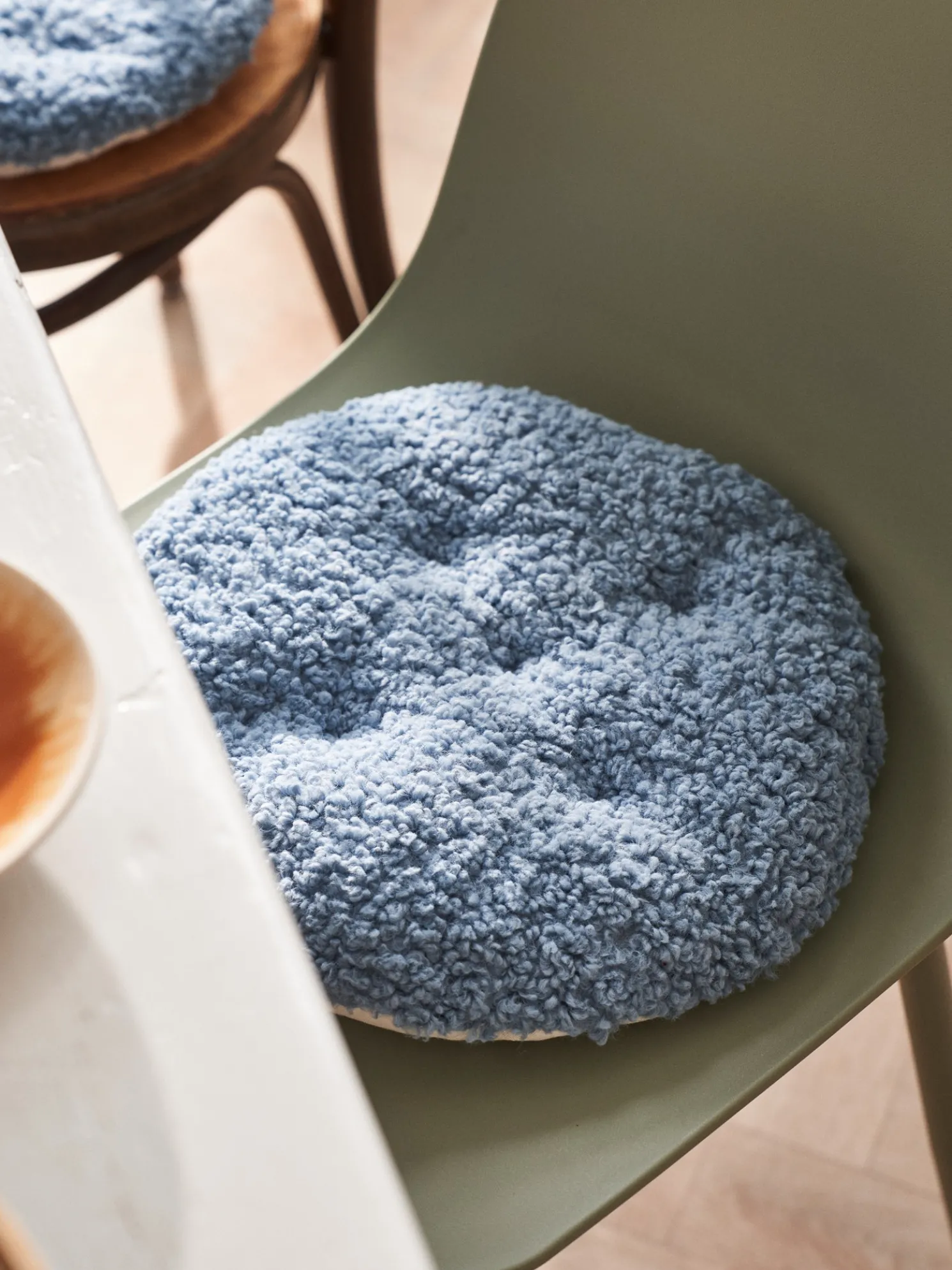 Das Sitzkissen der Schwestern besteht aus STANDARD 100 by OEKO-TEX®-zertifizierter* Baumwolle und Polyester und hat einen Durchmesser von 37 cm.