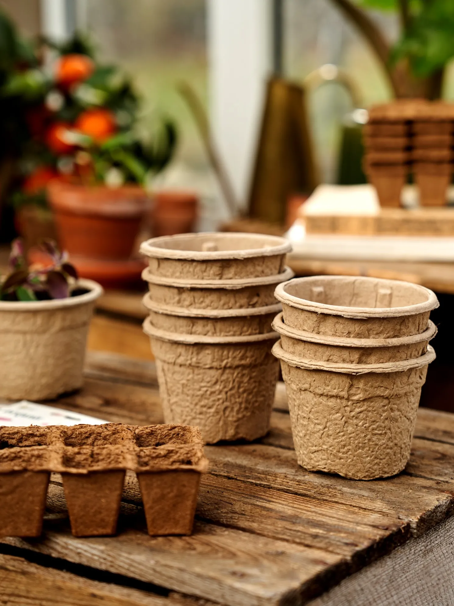 Die Töpfe und Anzuchtschale von Tuinplus werden aus Zellstoff hergestellt. Die Töpfe haben einen Durchmesser von 10 cm und die Schale fasst 8 Stück.Diese kleinen Töpfe sind ideal zum Säen oder Propagieren.