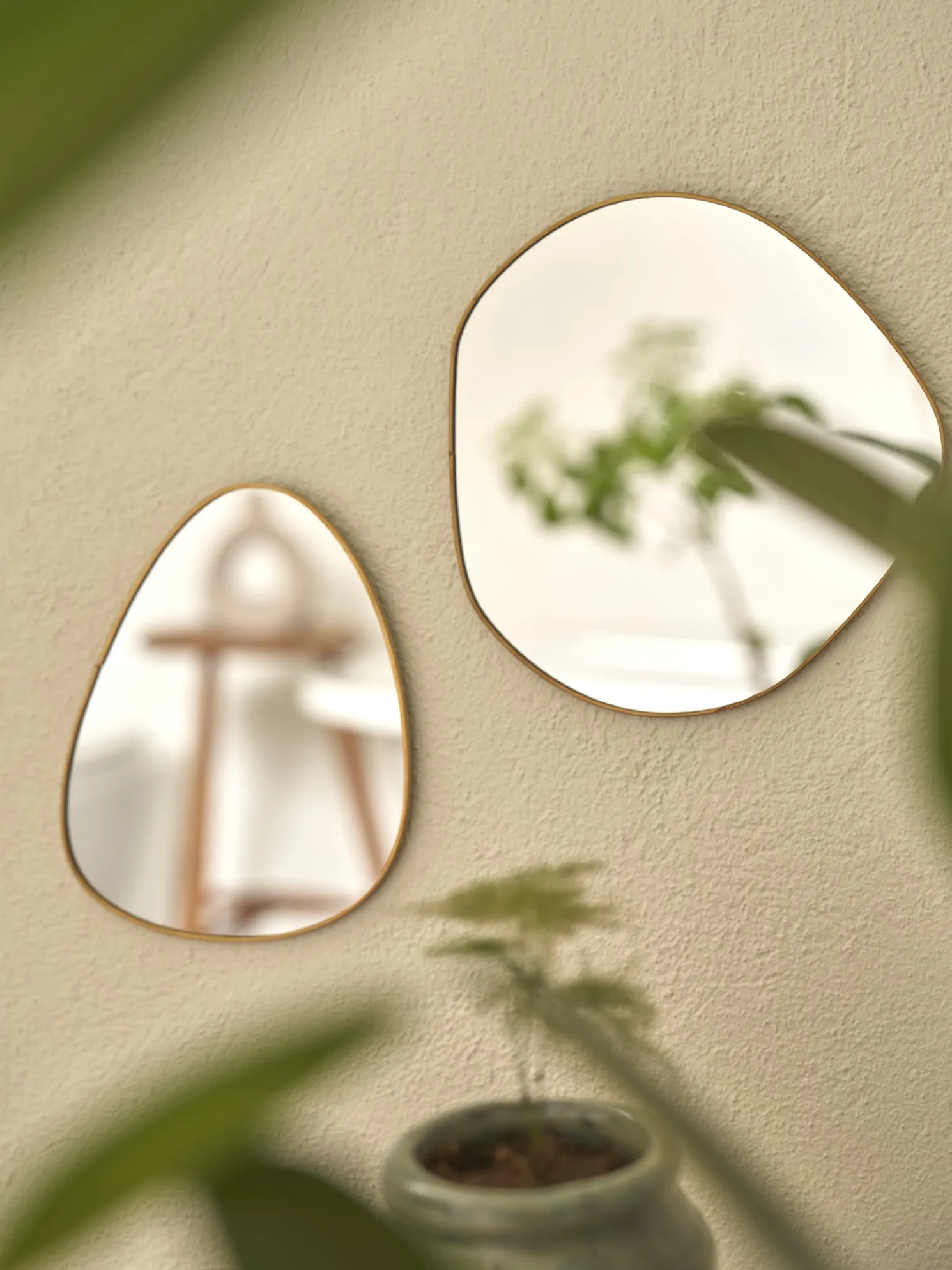 Der organisch geformte Spiegel der Schwestern besteht aus Glas und Eisen und misst 15 x 19 cm.