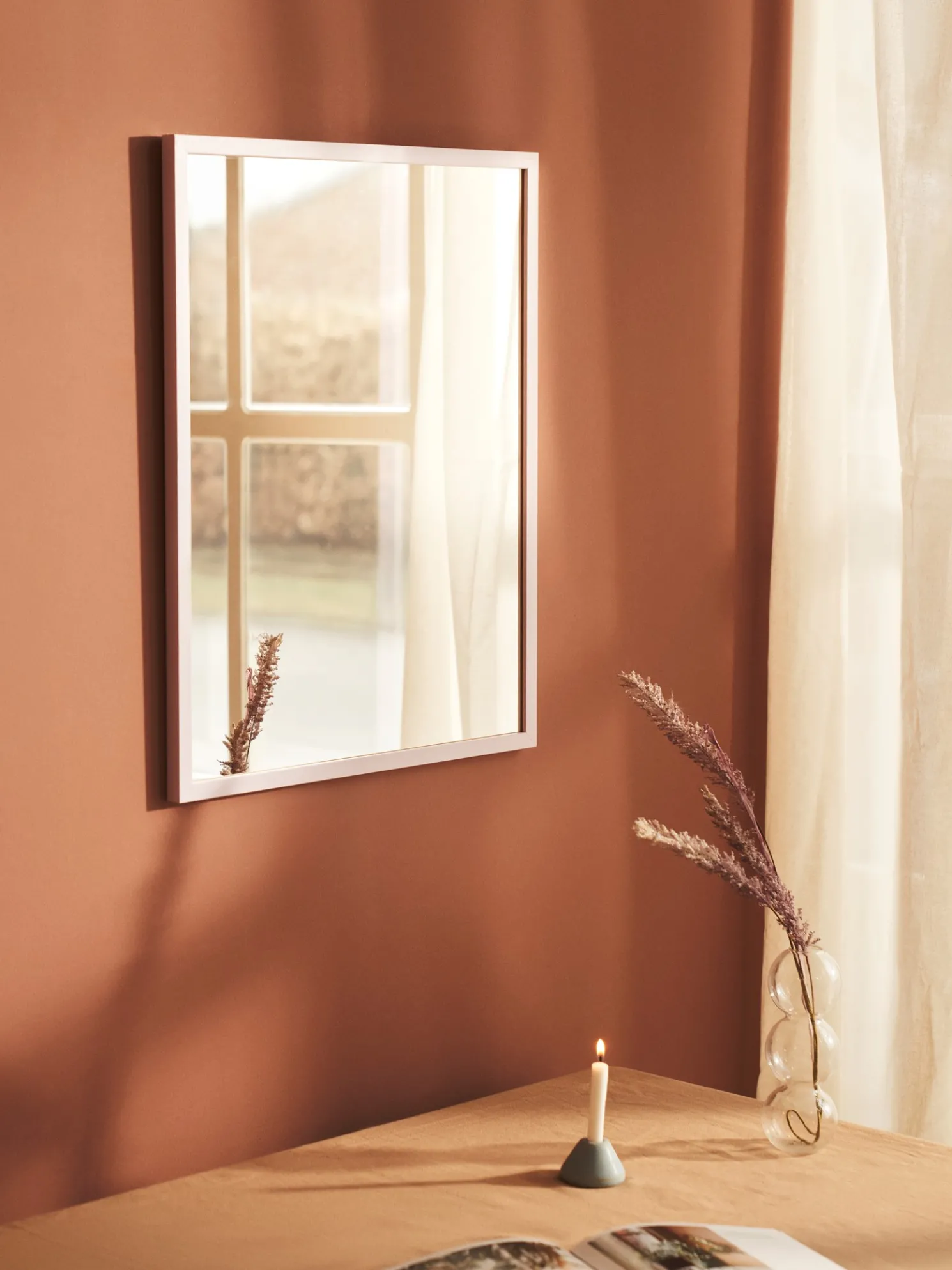 Dieser schöne Spiegel der dänischen Marke Poster & Frame hat einen Holzrahmen und wird in Dänemark hergestellt. Die hochwertigen Materialien vereinen sich zu einer wunderbaren Verbindung von Funktionalität und Design. Die Schwestern weisen darauf hin, dass Holz ein natürliches Material ist und daher der Ausdruck und die Farbe des Rahmens variieren können.