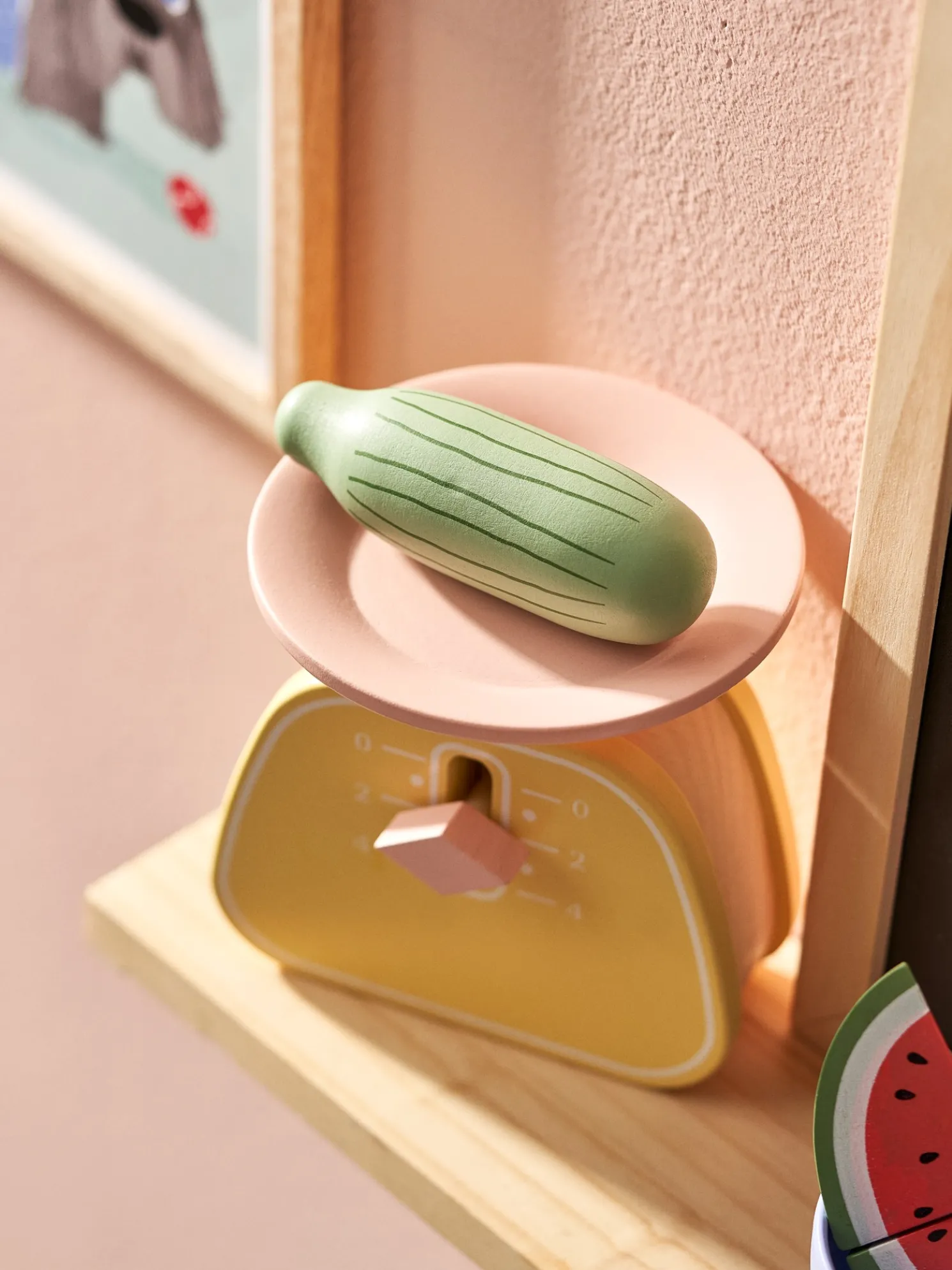 Anna und Claras Spielzeug-Gurke besteht aus 100 % FSC®-zertifiziertem Schima Superba. Lassen Sie die Kleinen auf spielerische Art und Weise die Freude am Essen und am Kochen entdecken.