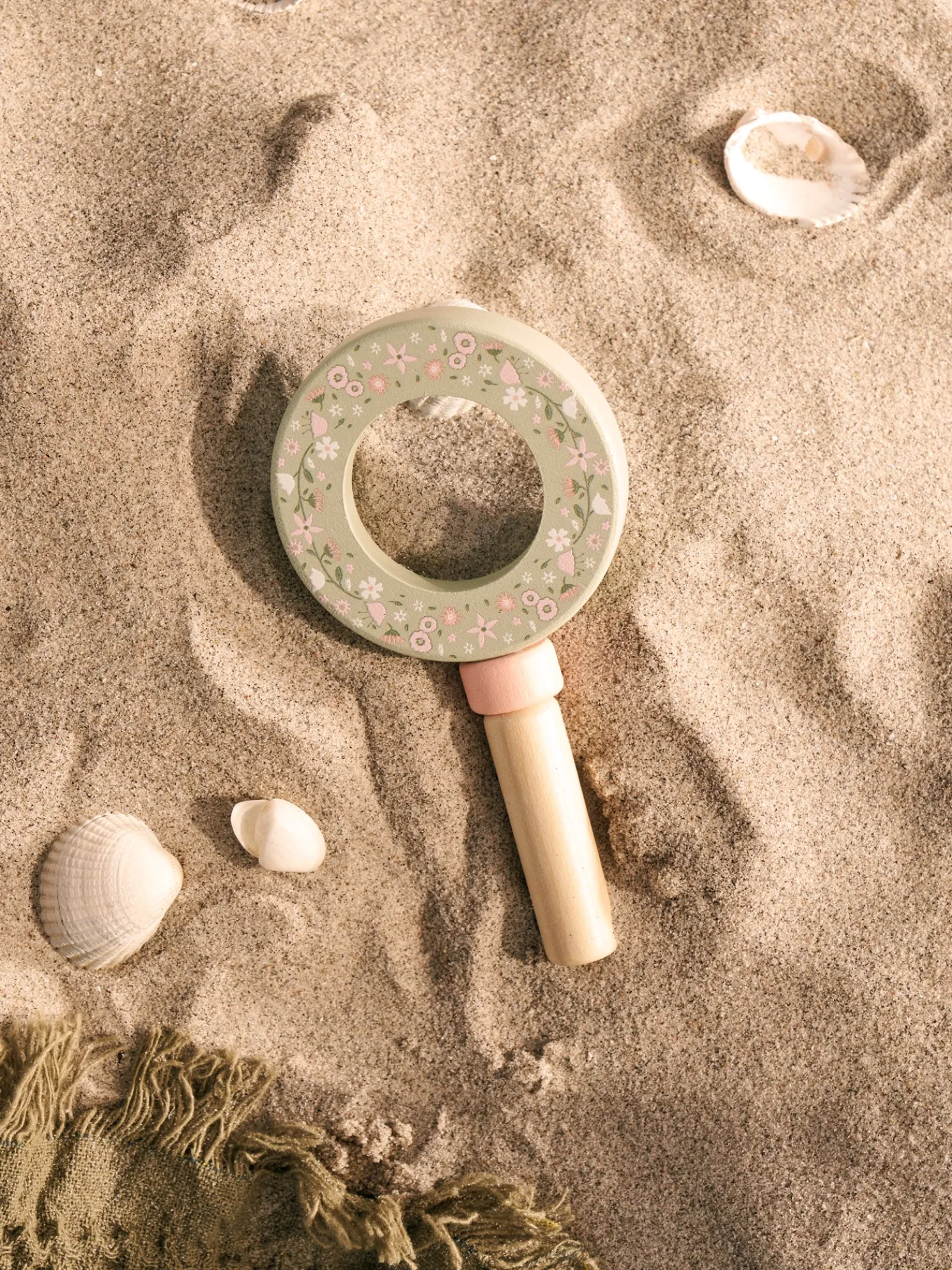 Die Spielzeuglupe der Schwestern besteht aus 100 % FSC®-zertifiziertem Buchenholz sowie Acryl.