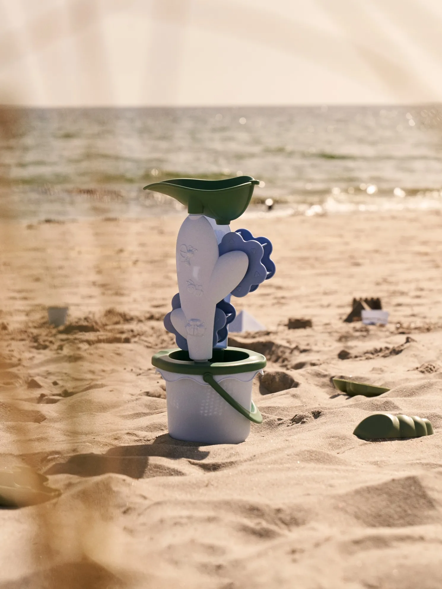 Die Spielzeugsandmühle der Schwestern besteht aus Polypropylen und ist 31 cm hoch.