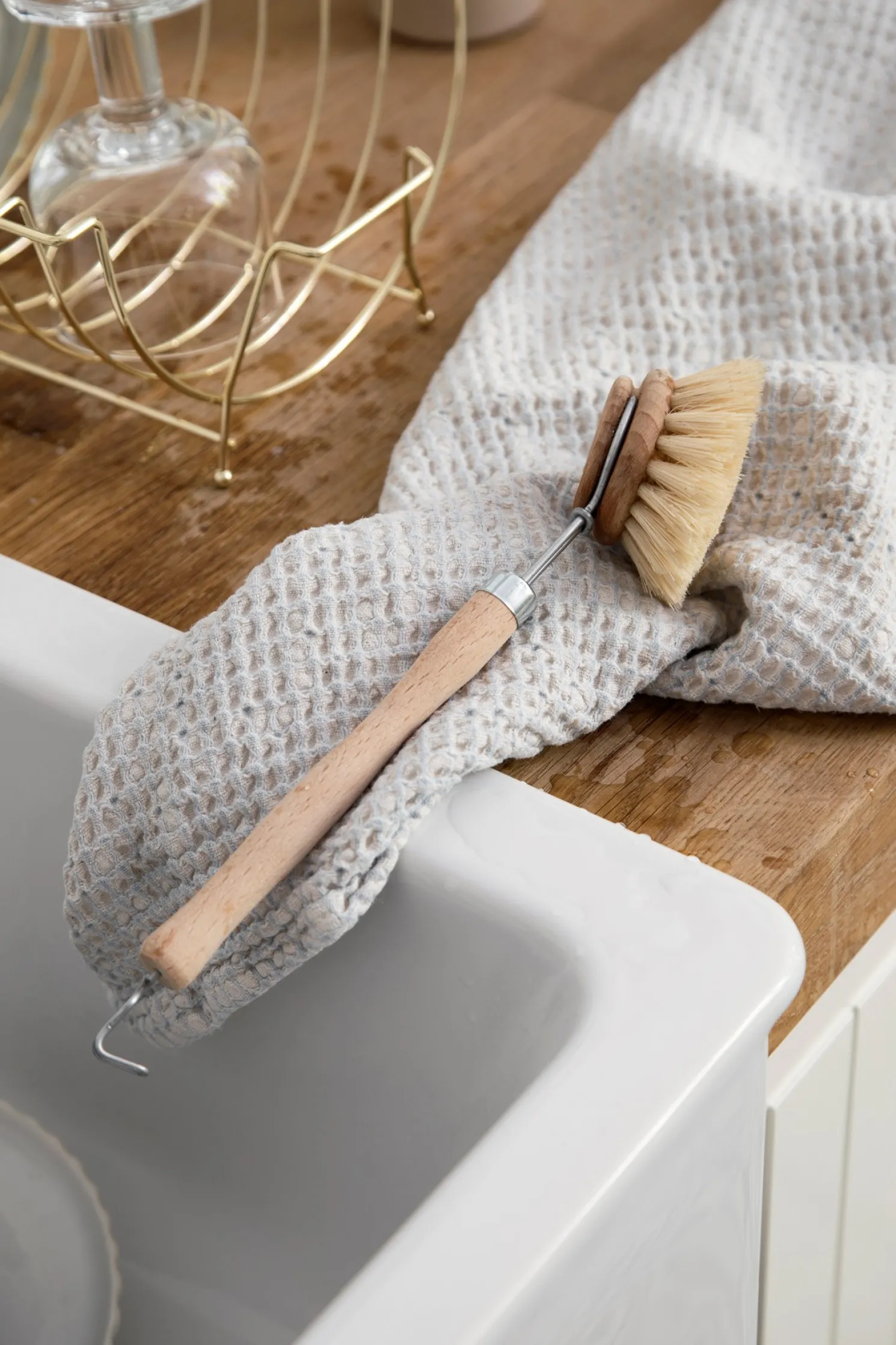 Clara mag es, die Küche schön sauber zu halten. Anna findet sie in der Küche, wo sie nach einem leckeren Abendessen spült. „Diese Spülbürste aus Holz ist wunderbar zum Abwaschen“, sagt Clara. Die Spülbürste der Schwestern besteht aus Buchenholz und hat einen abnehmbaren Bürstenkopf. „Das macht das Austauschen leicht“, lächelt Clara. „Ein praktisches Instrument für die Küche.“