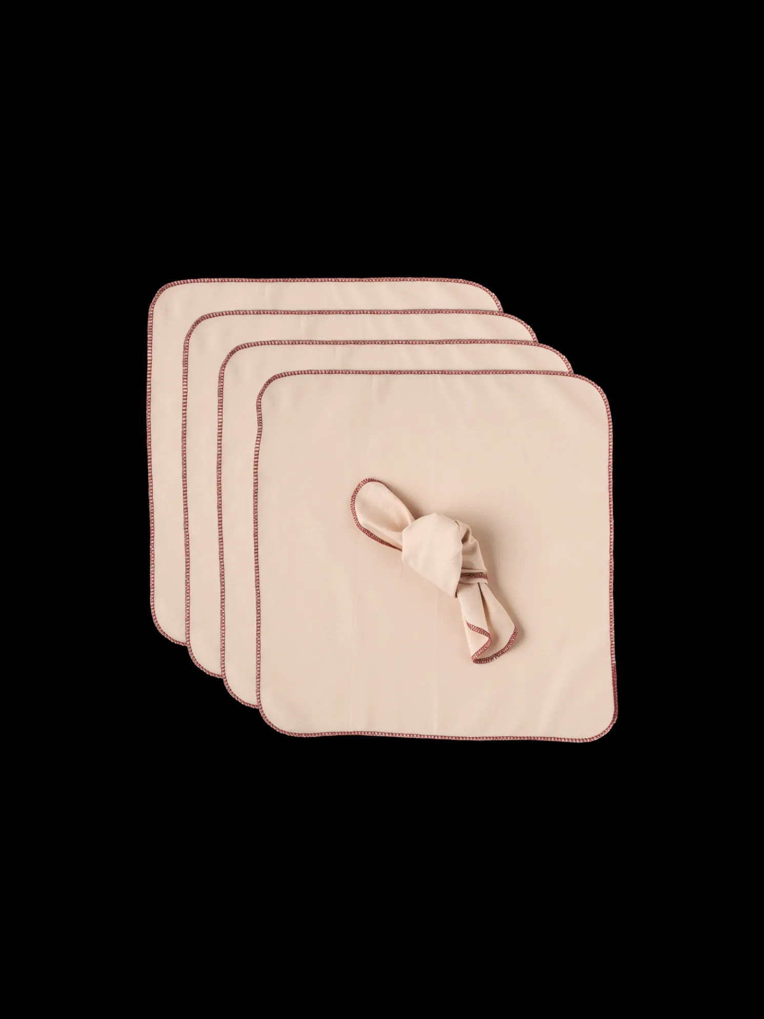 Die Servietten der Schwestern bestehen aus STANDARD 100 by OEKO-TEX®-zertifizierter Baumwolle und werden in 4er-Packs geliefert. Sie können die weichen Servietten mit schönen Serviettenringen verwenden oder sie zu eleganten Formen falten.