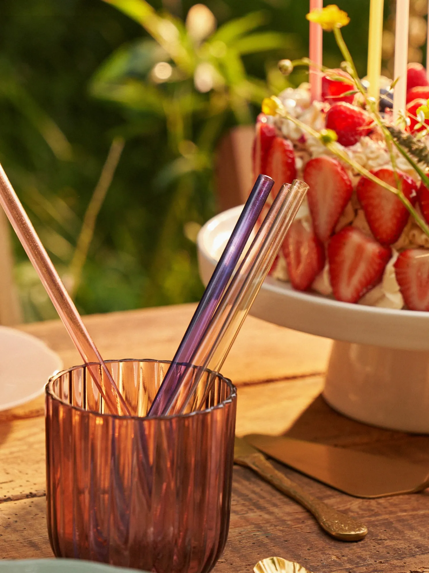 Die Glasstrohhalme der Schwestern werden im 4er-Set geliefert.