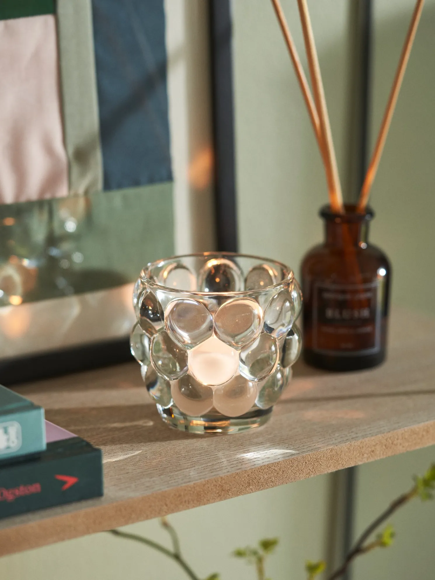 Der Teelichthalter der Schwestern ist eine schöne Lichtquelle für ein Hygge-Gefühl in der Wohnung.