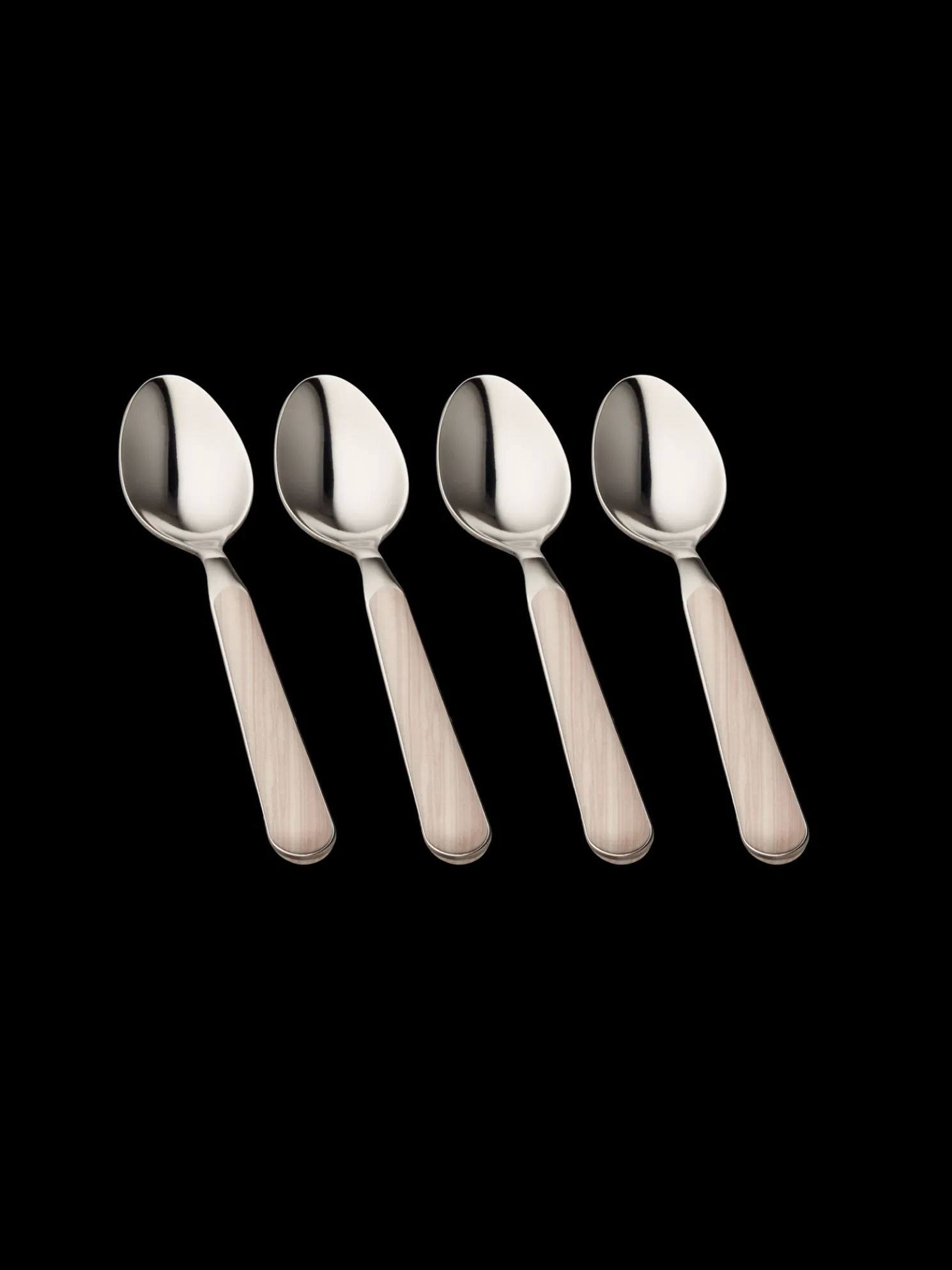 Die Schwestern weisen freundlich darauf hin, dass dieses Produkt nur online erhältlich ist.Dieses schöne Teelöffel-Set von Neva ist aus Edelstahl gefertigt und mit sublimierten Griffen in Holzoptik aus glasfaserverstärktem Polyester versehen. Ein Set enthält 4 Teelöffel mit einer Länge von 14,7 cm.Anna und Clara wissen, dass Besteck ein wesentliches Element eines jeden kulinarischen Erlebnisses ist, das sowohl Funktionalität als auch Ästhetik verkörpert. Die richtige Tischdeko kann Wunder bewirken, finden sie, und die Sammlung von Messern, Gabeln, Löffeln und mehr der italienischen Marke Neva war ein wunderbarer Fund für die Schwestern.„Besteck ist nicht nur ein Werkzeug zum Essen; es ist eine Verlängerung des eigenen Stils“, bemerkt Anna, während sie sorgfältig den Tisch für ein Abendessen mit Freunden deckt. „Jedes Besteckteil spricht Bände über das Kunsthandwerk, das dahinter steckt“, fügt Clara mit einem Lächeln hinzu.Lassen Sie das elegante Besteckset Ihr nächstes kulinarisches Erlebnis in neue Höhen tragen.