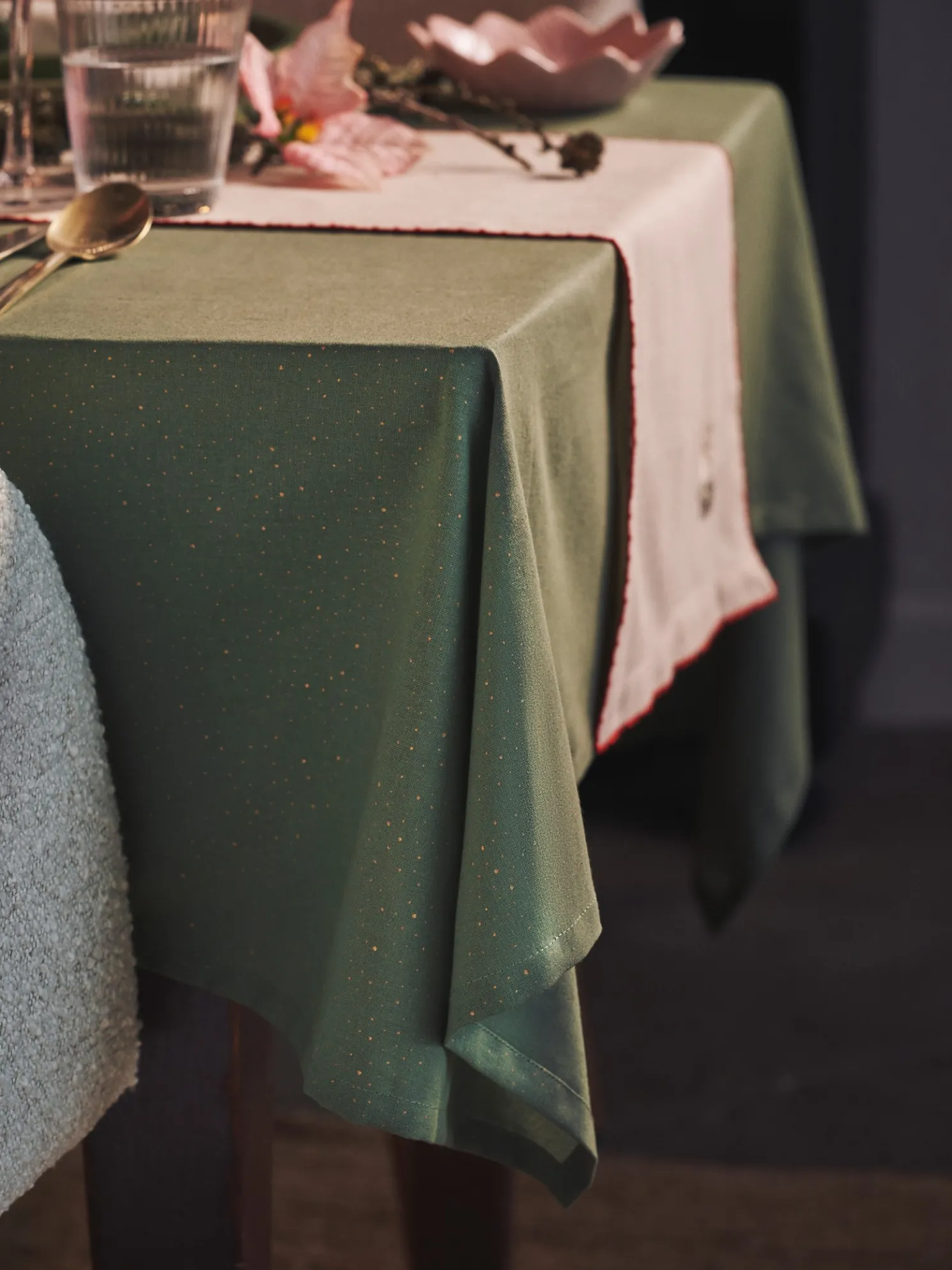Die Tischdecke der Schwestern besteht aus STANDARD 100 by OEKO-TEX®-zertifizierter* Baumwolle. Sie misst 240 x 140 cm und der sanfte Schimmer der Tischdecke verleiht der festlichen Tischdekoration einen Hauch von Glanz.*22.HIN.14007 HOHENSTEIN HTTI