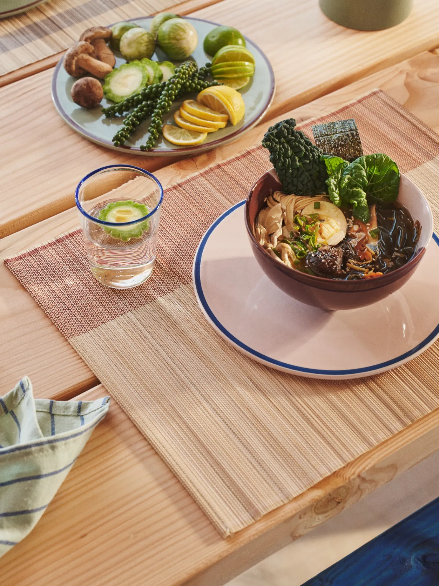 Das Tischset der Schwestern besteht aus 100 % FSC®-zertifiziertem Bambus und misst 45 x 35 cm. Es kann zusammengerollt werden, um es nach dem Essen einfach zu verstauen.