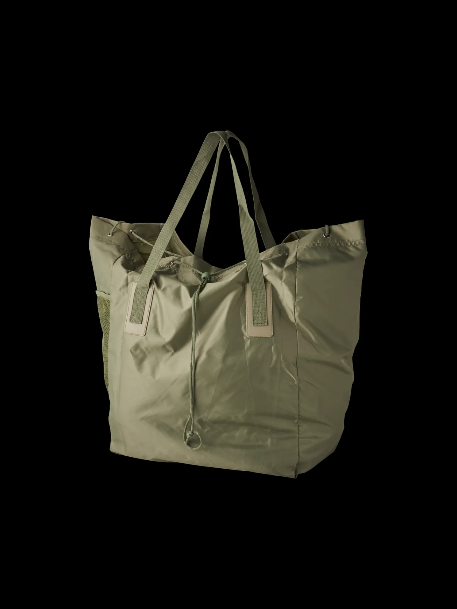Die große Tragetasche der Schwestern ist STANDARD 100 by OEKO-TEX®-zertifiziert und perfekt für Wochenendausflüge. Sie kann oben mit einem Kordelzug geschlossen werden und hat eine Netz-Seitentasche sowie eine Innentasche mit Reißverschluss.