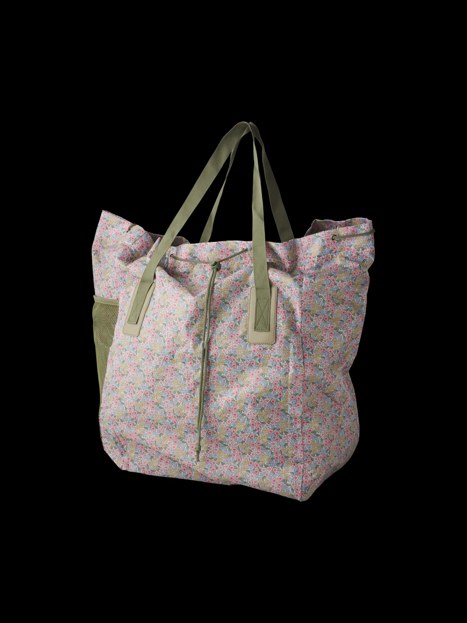 Die große Tragetasche der Schwestern ist STANDARD 100 by OEKO-TEX®-zertifiziert und perfekt für Wochenendausflüge. Sie kann oben mit einem Kordelzug geschlossen werden und hat eine Netz-Seitentasche sowie eine Innentasche mit Reißverschluss.