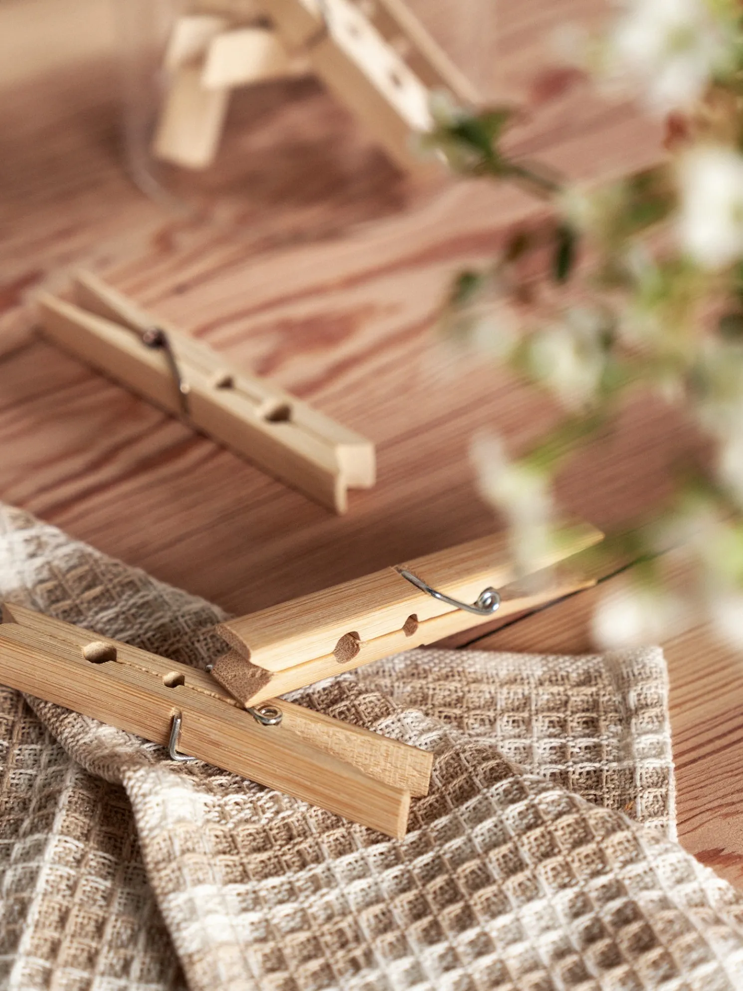 Die Wäscheklammern der Schwestern bestehen aus 100 % FSC®-zertifiziertem Bambus. Machen Sie den Waschtag mit schönem Waschzubehör etwas unterhaltsamer.