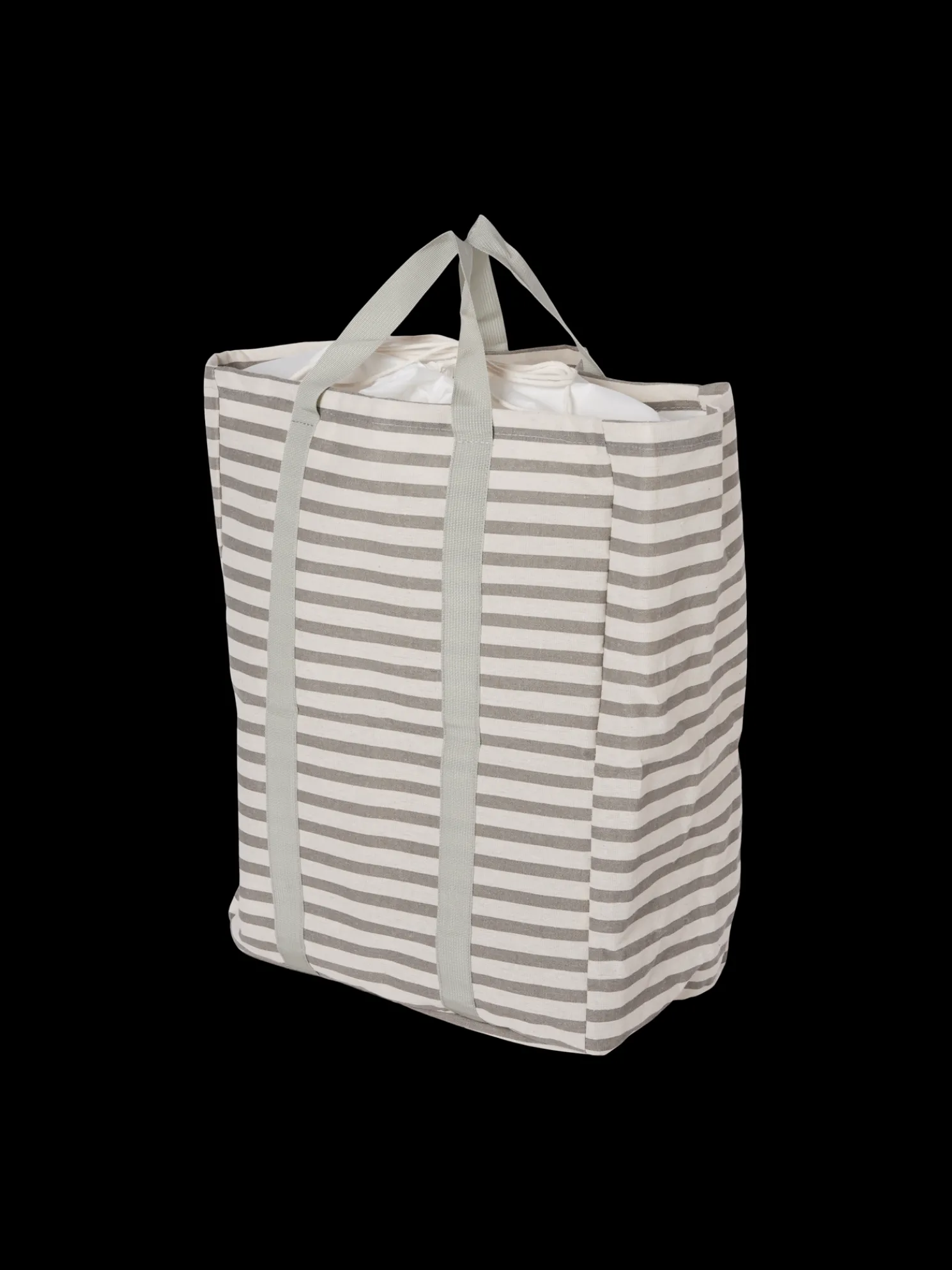Der Wäschebeutel der Schwestern hat einen Kordelzugverschluss und Griffe, um ihn leicht in die Waschküche zu tragen.