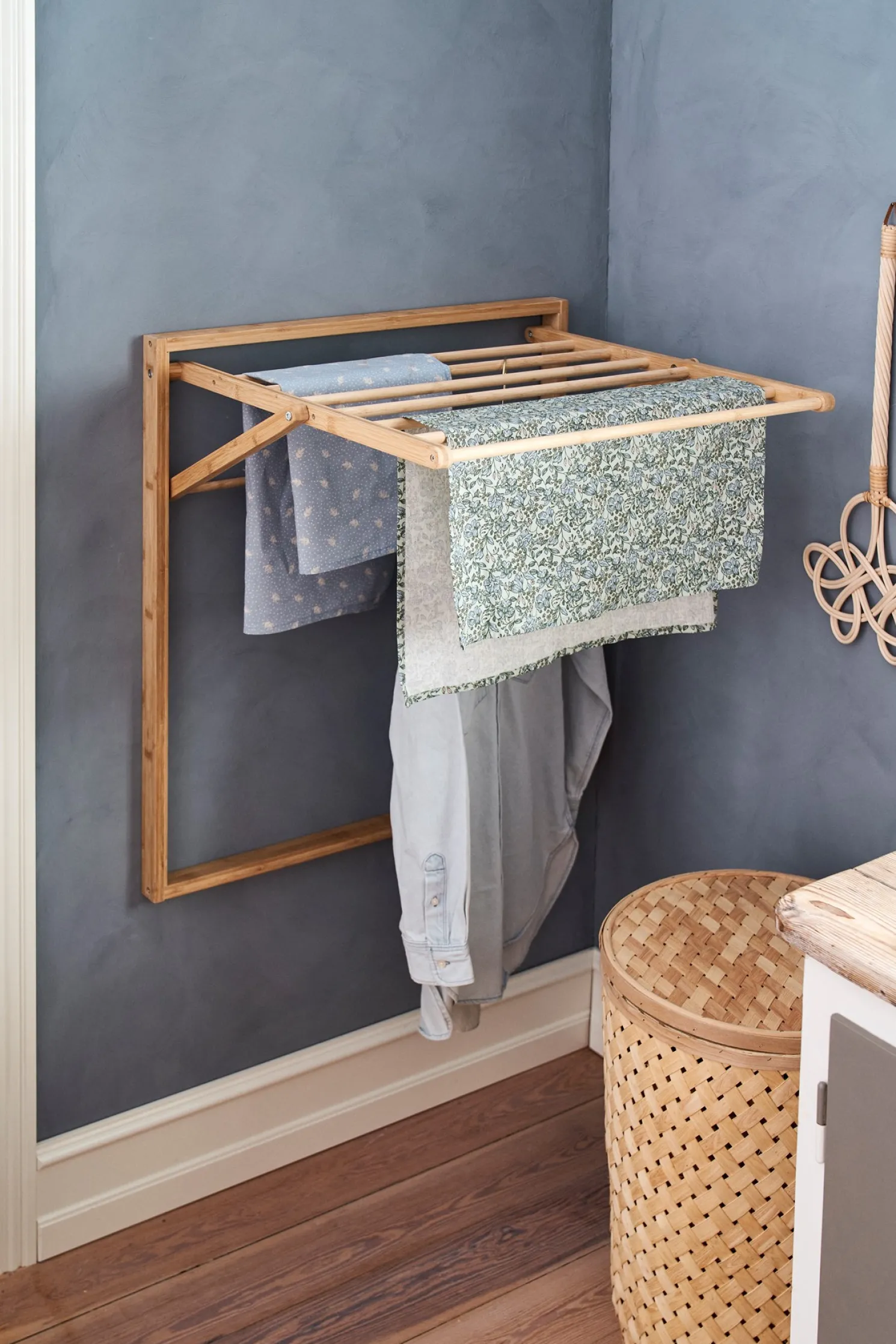 Der Wäscheständer der Schwestern ist aus 100 % FSC®-zertifiziertem Bambus hergestellt und misst 69 x 63 x 80 cm.