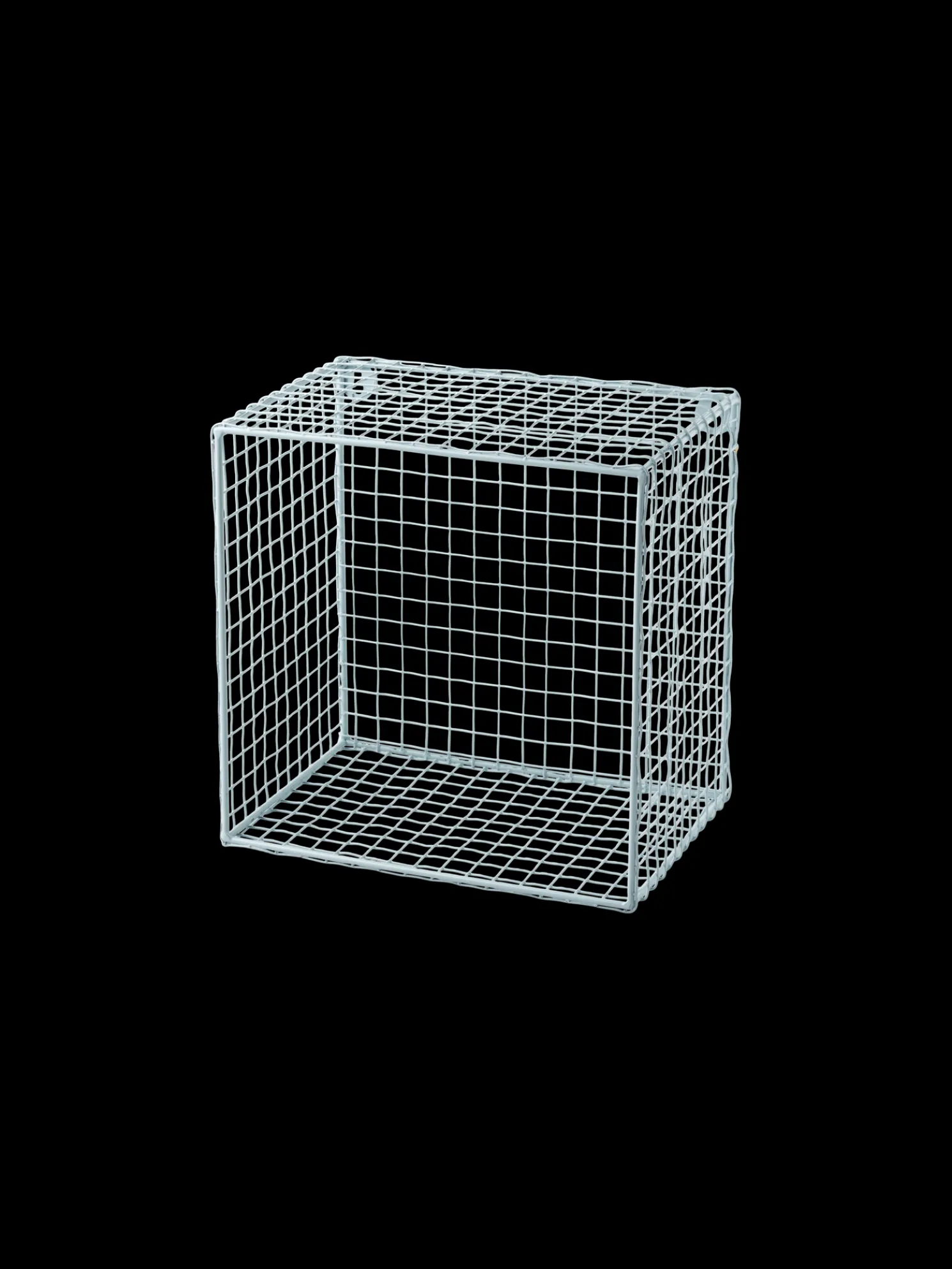 Anna und Claras Wandregal ist aus Eisen gefertigt und misst 25 x 18 x 25 cm.