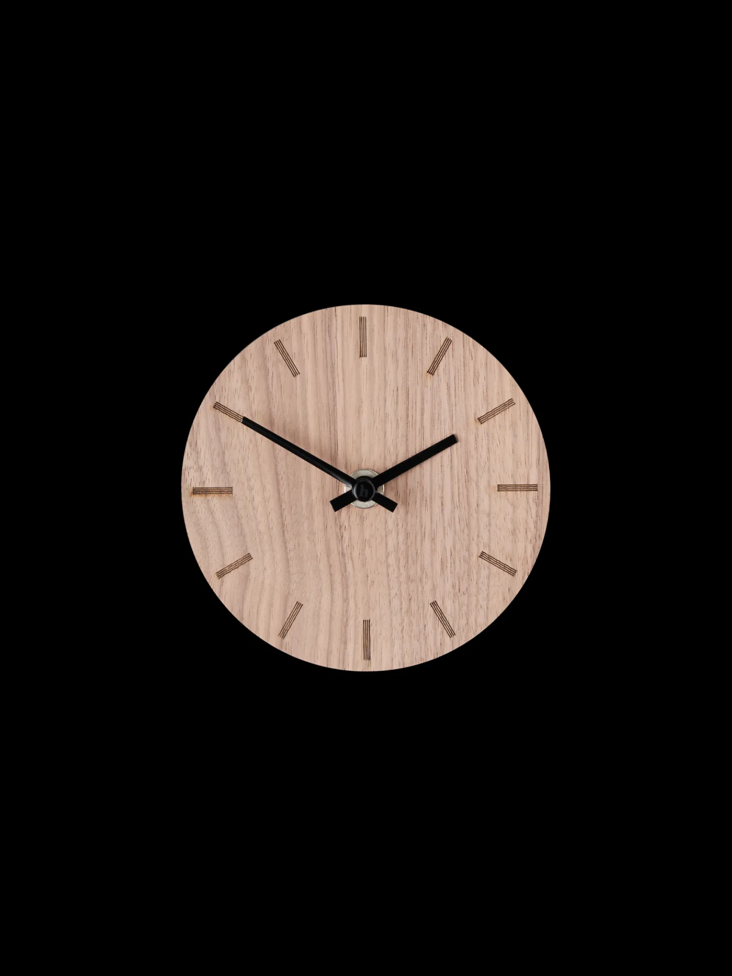 Die Walnut Wanduhr von Hemverk ist aus Walnussfurnier gefertigt, hat einen Durchmesser von 12 cm und verwendet ein leises Uhrwerk von Junghans. Die Uhr wird mit der erforderlichen AA-Batterie, einem Dübel und einer Schraube zur Befestigung geliefert.Mit ihrem minimalistischen Design und der natürlichen, von der skandinavischen Natur inspirierten Farbe ist die Walnut-Uhr mehr als nur ein Mittel zur Zeitanzeige.
