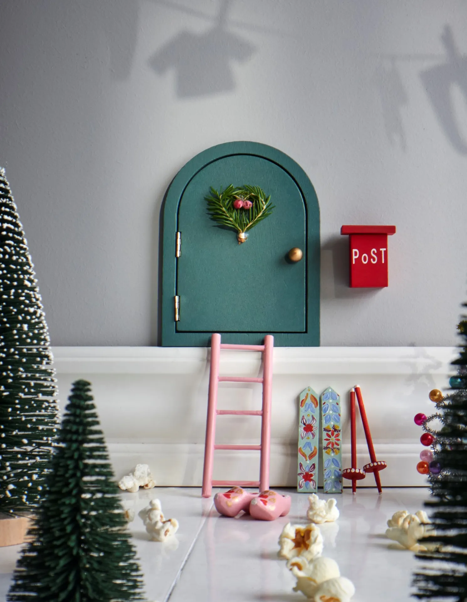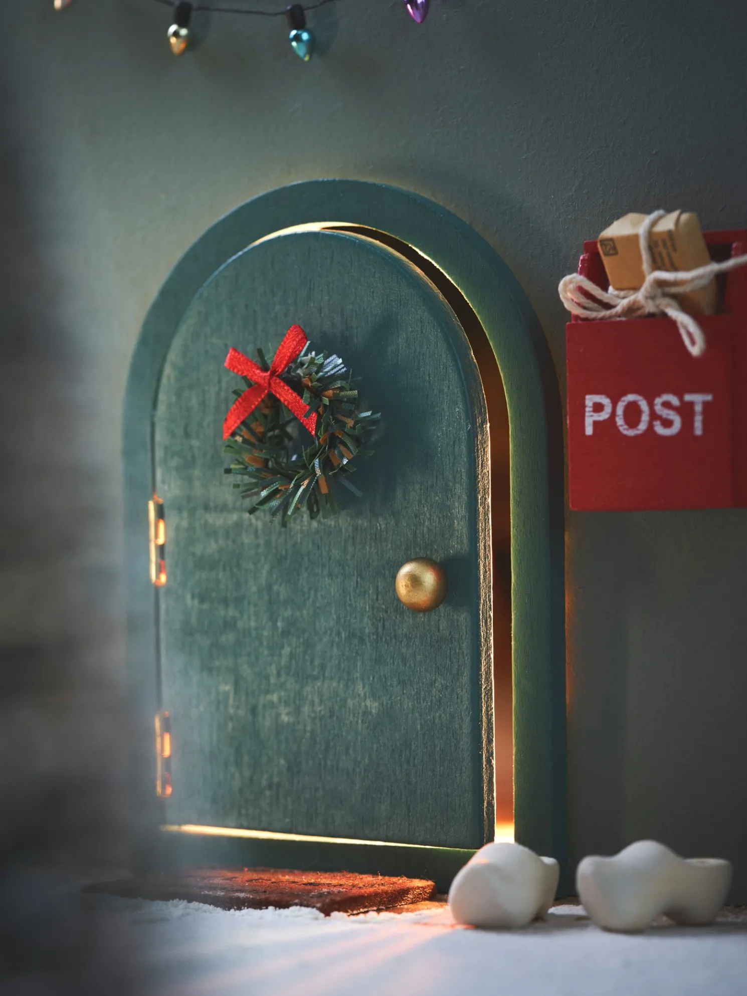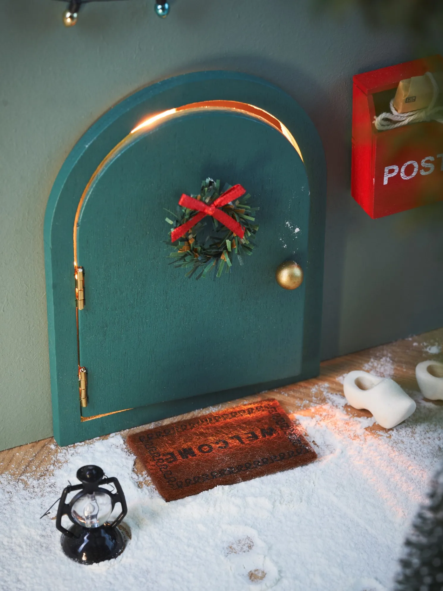 Die Miniaturtür der Schwestern ist aus FSC®-zertifiziertem Schima Superba gefertigt und misst 10,5 x 14 cm. Wichteltüren eignen sich hervorragend als wunderbare und verspielte Weihnachtsdekoration.